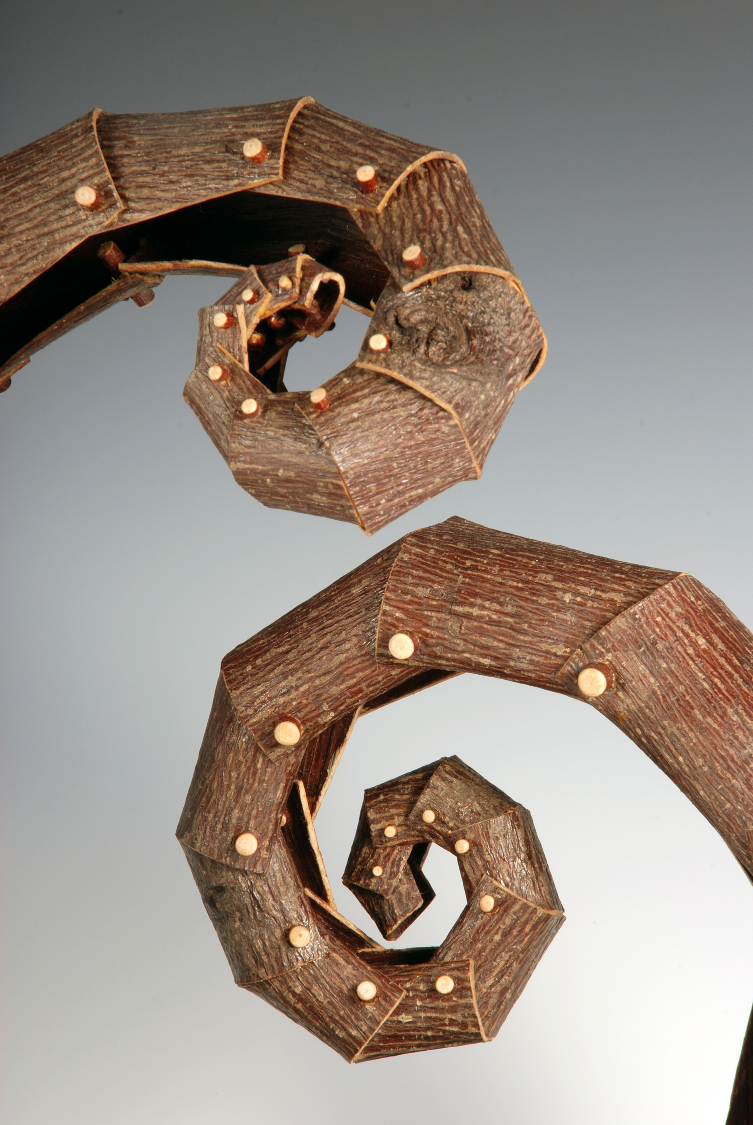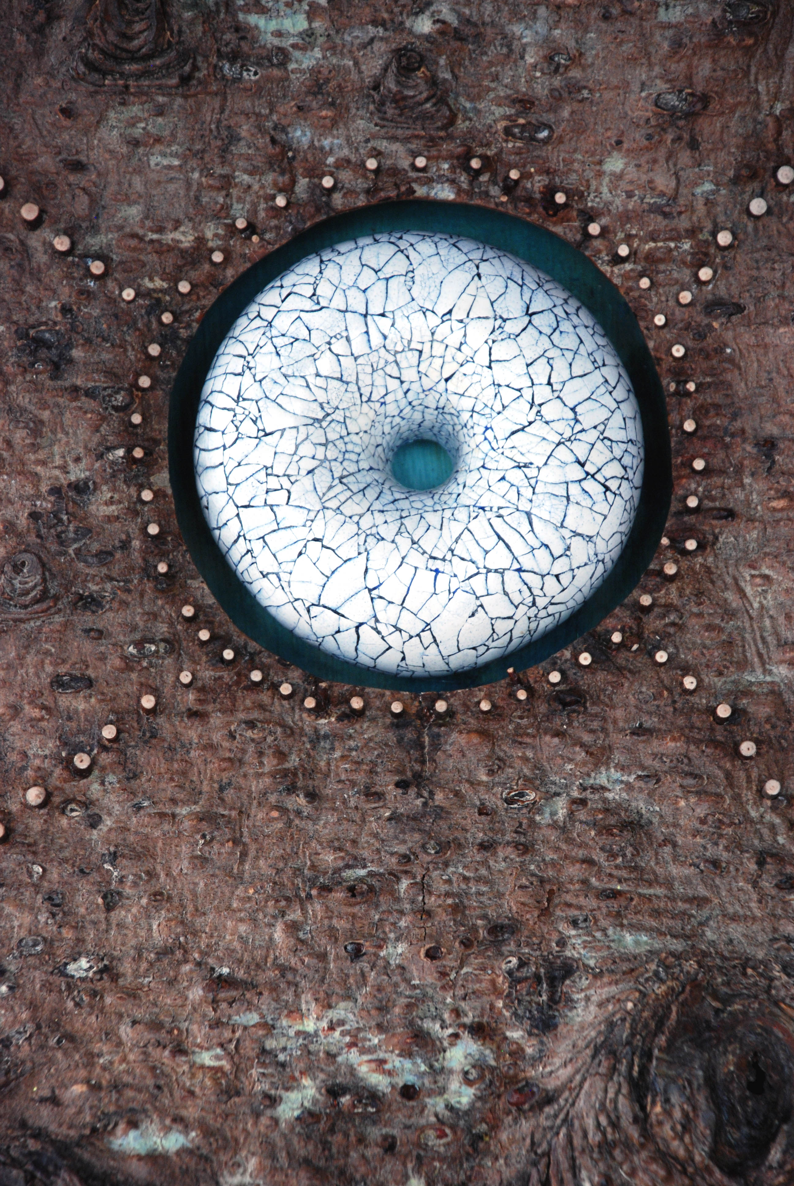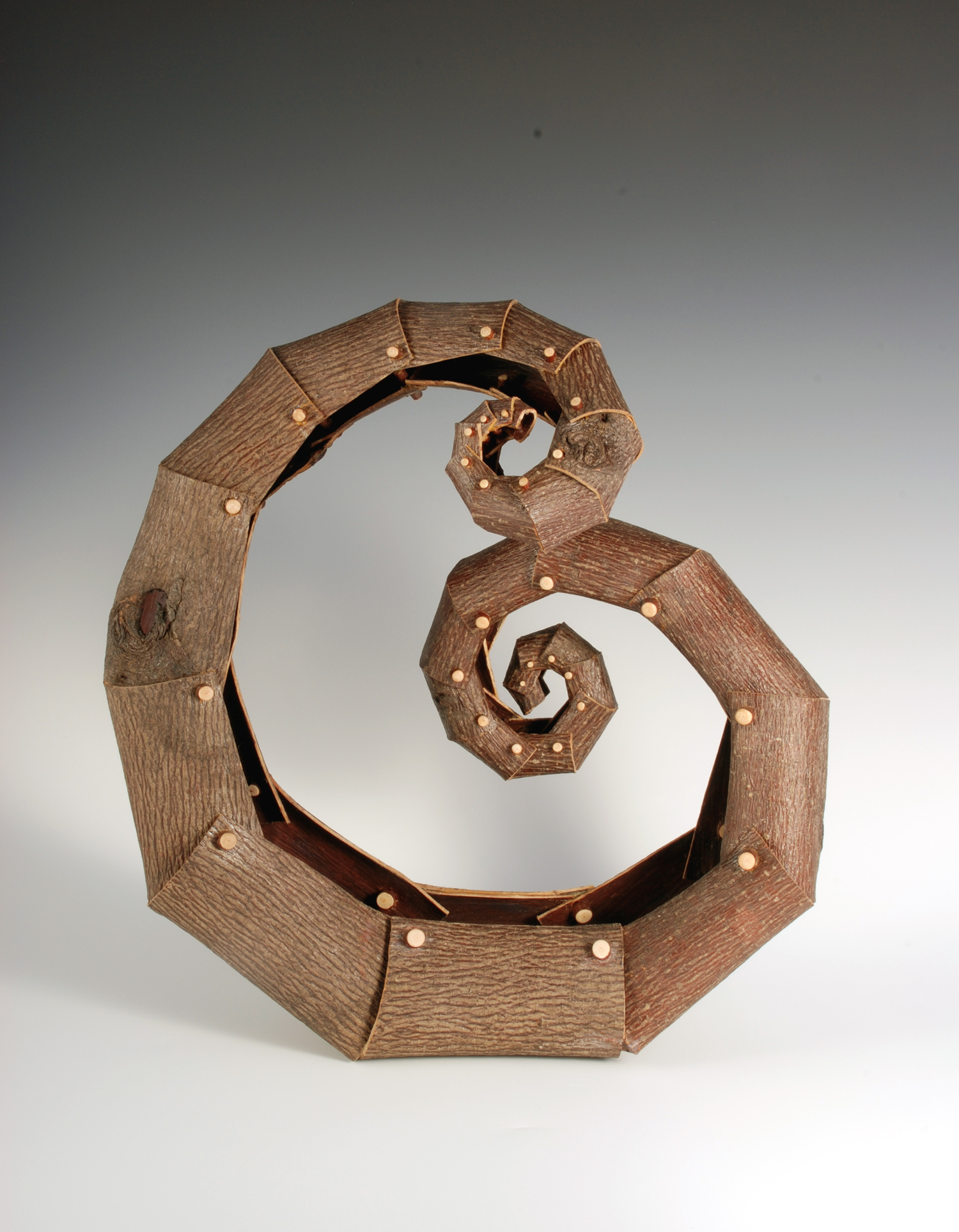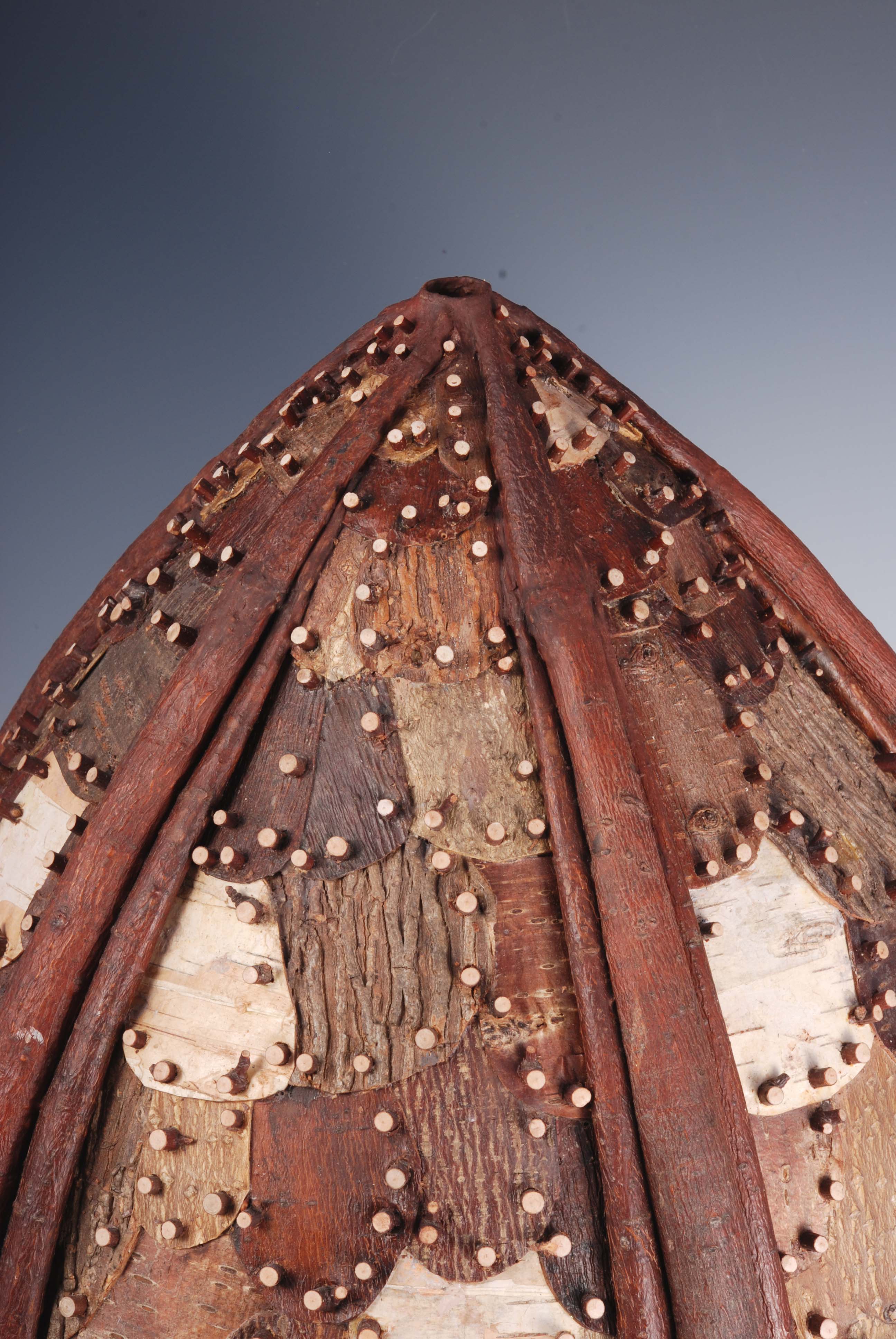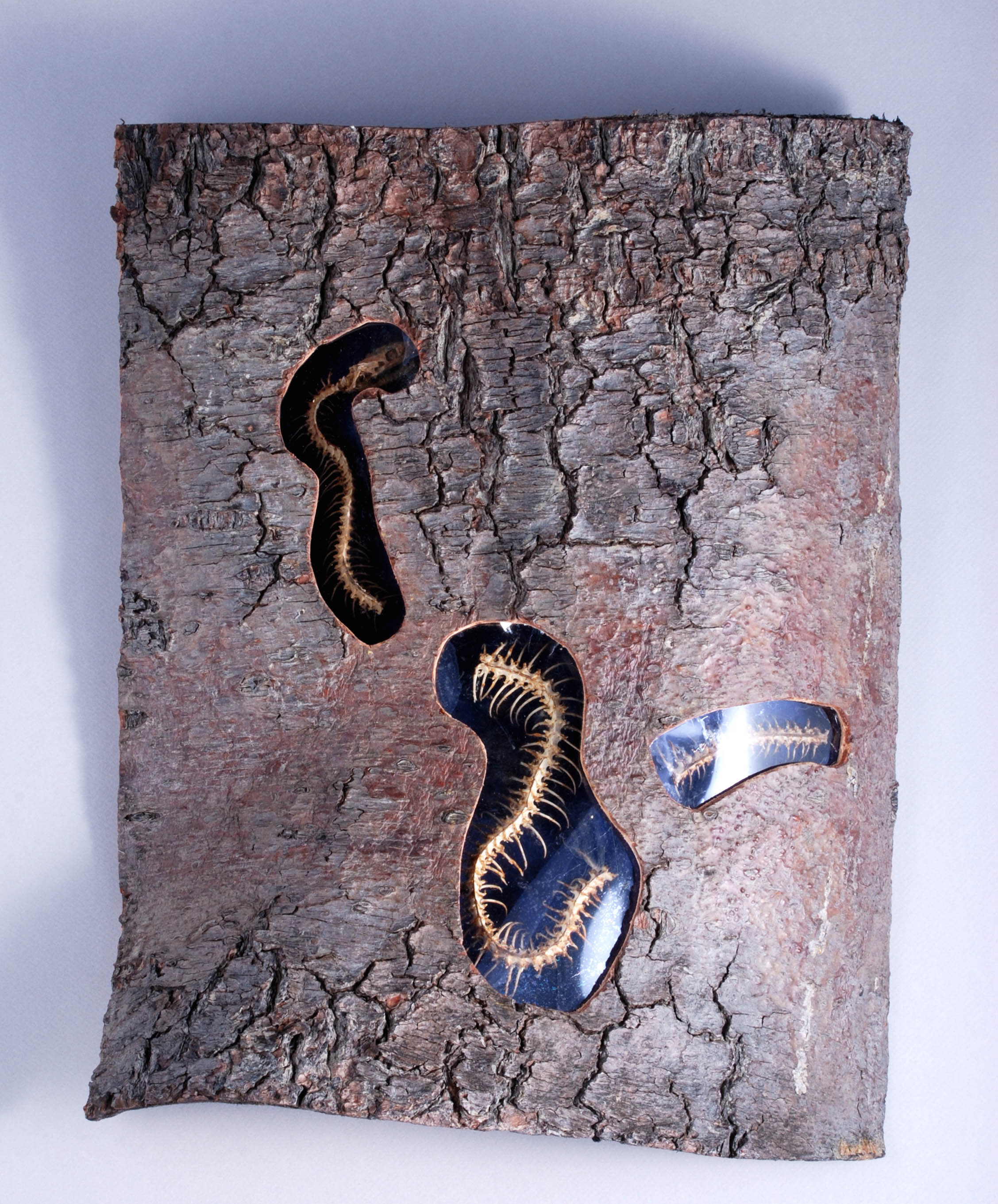 “Roid 2014” various barks, hazelnut and sweet birch pegs, eggshells, 19"h x 14"w x 9.5"d