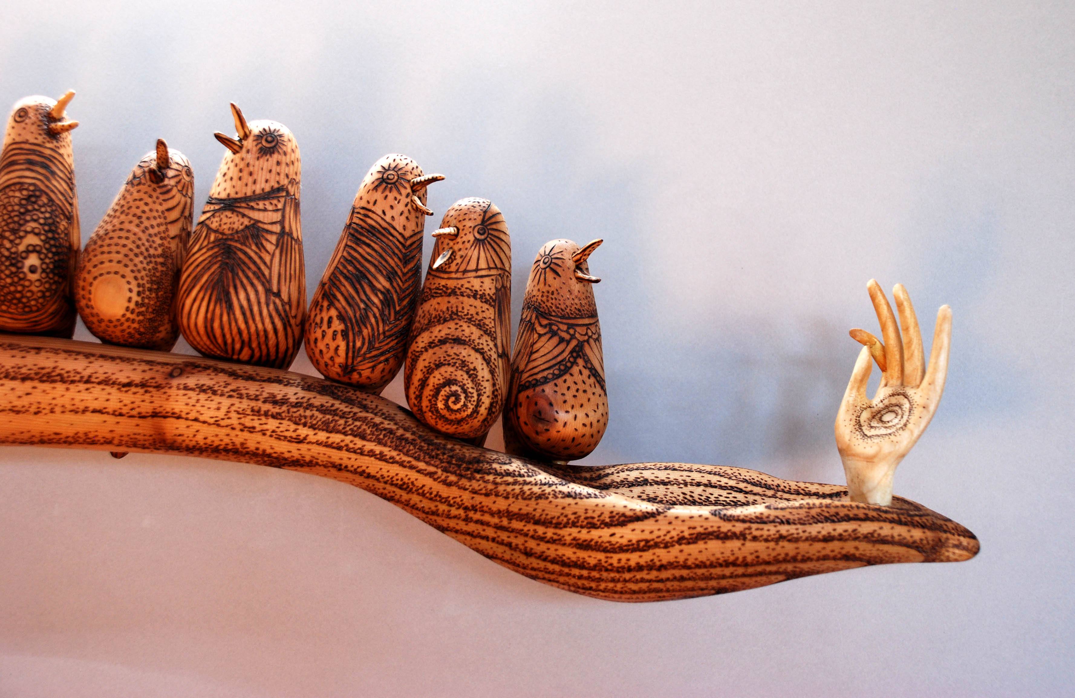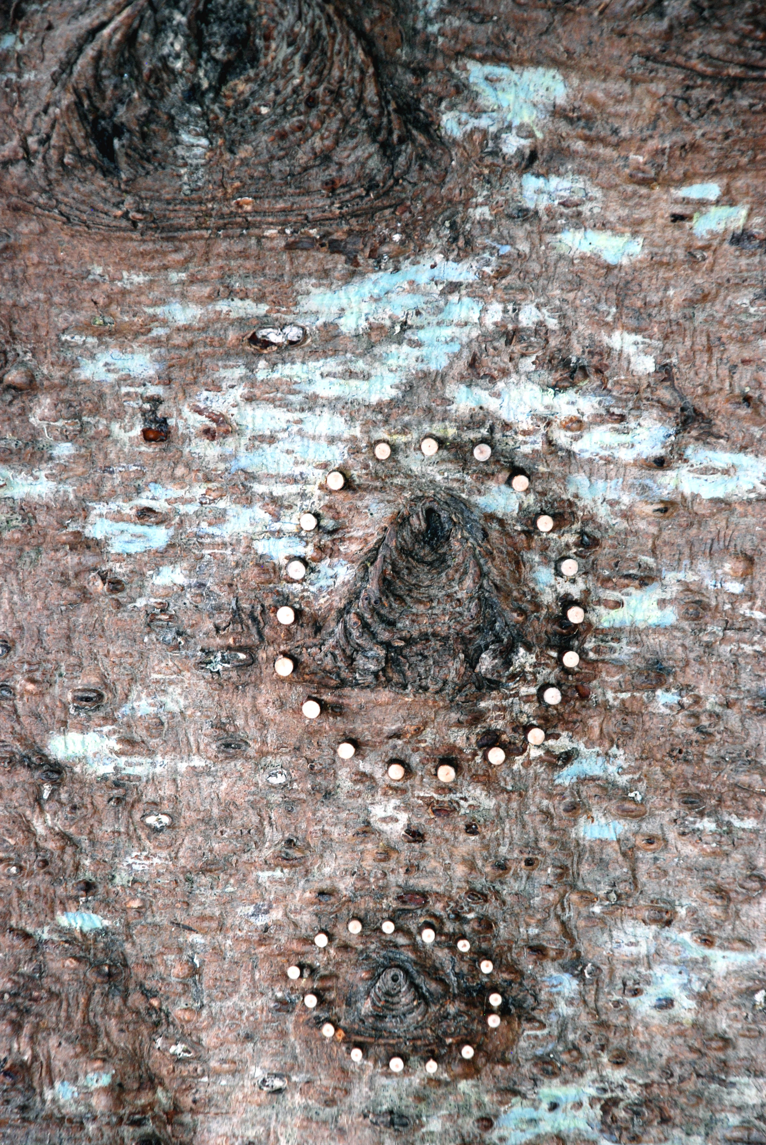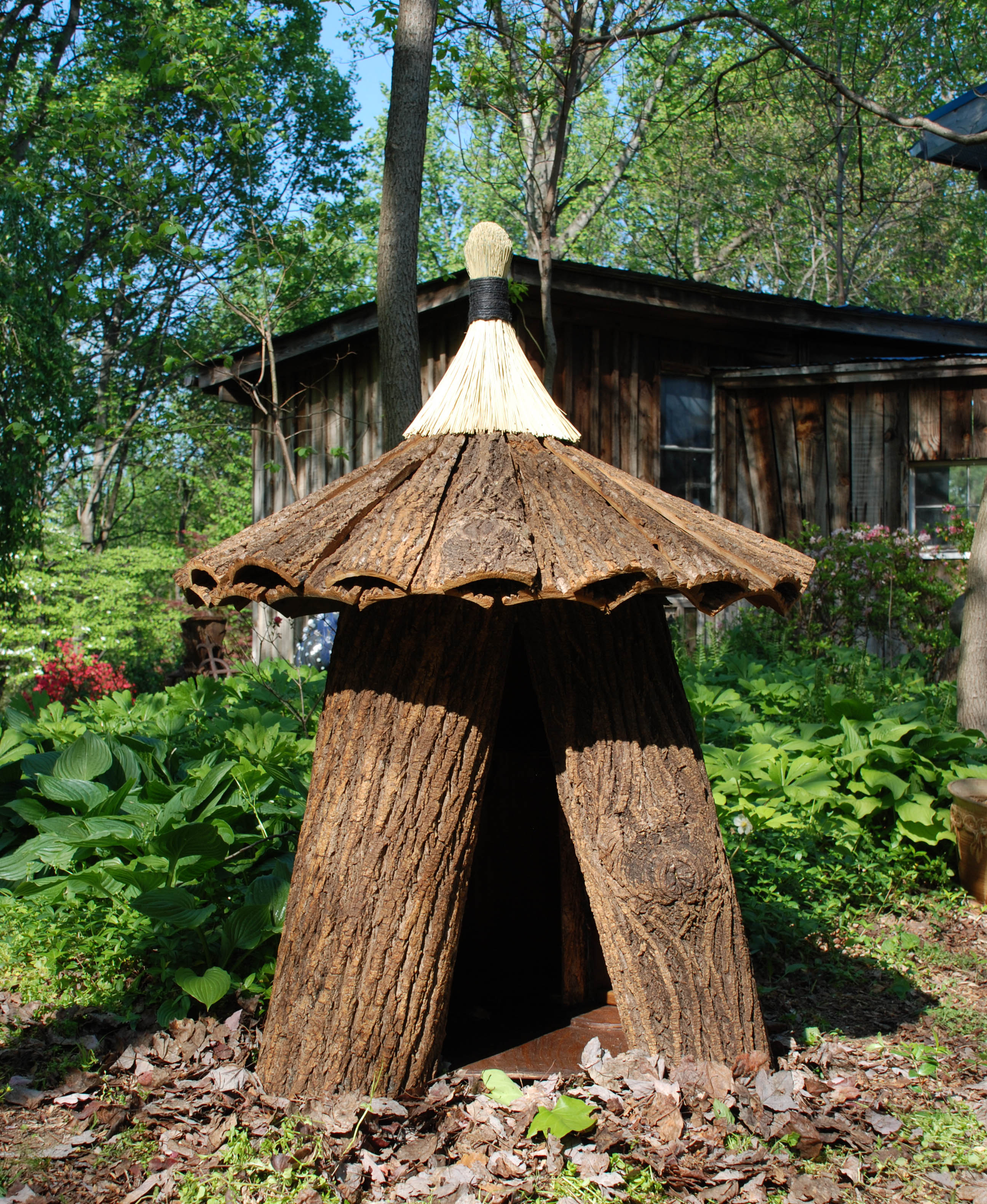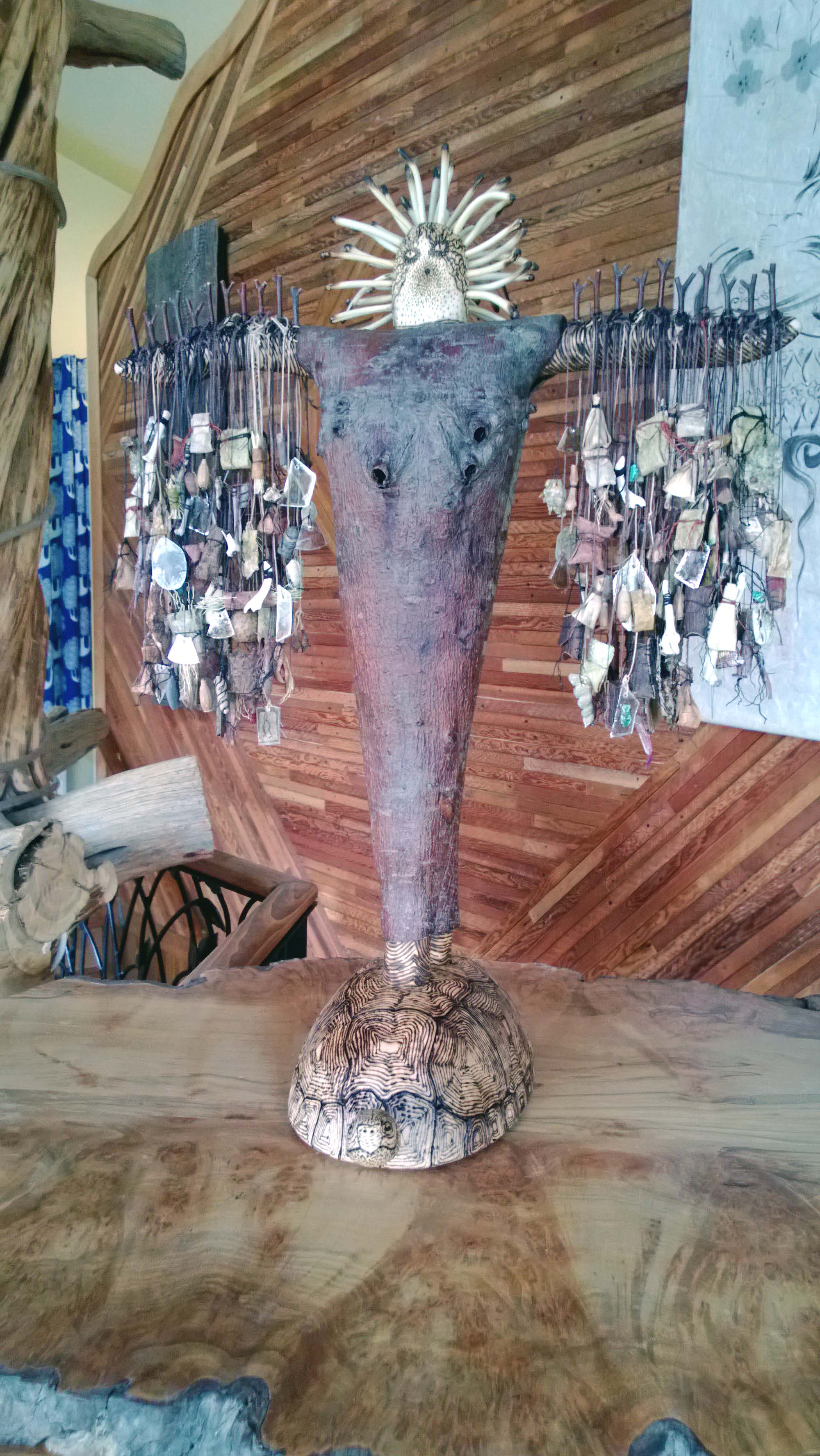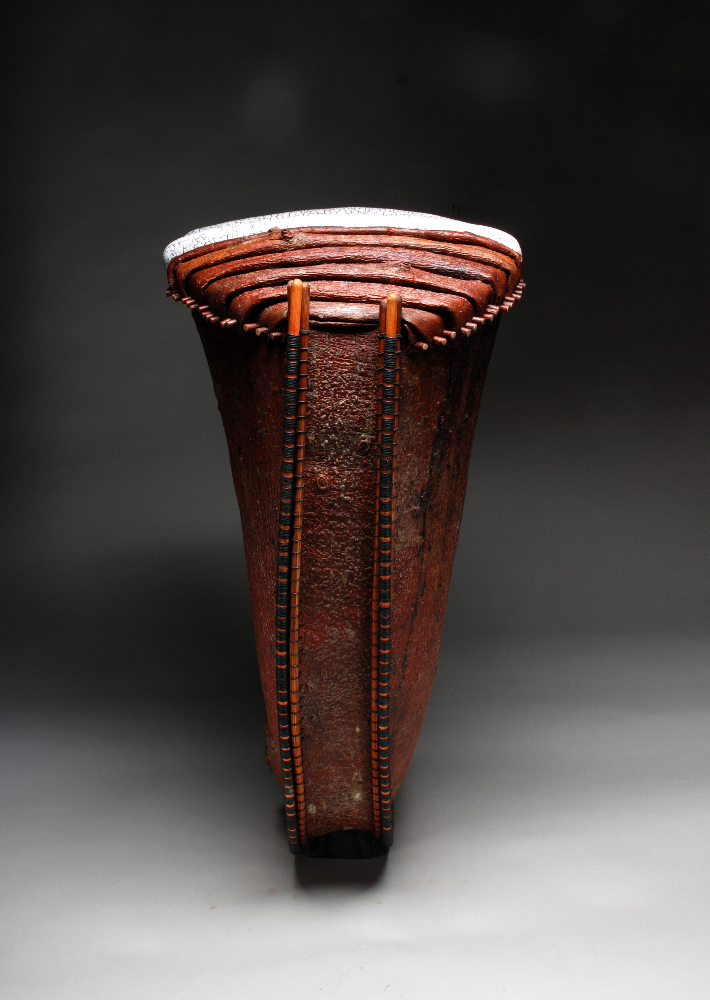 “Roid 2014” various barks, hazelnut and sweet birch pegs, eggshells, 19"h x 14"w x 9.5"d