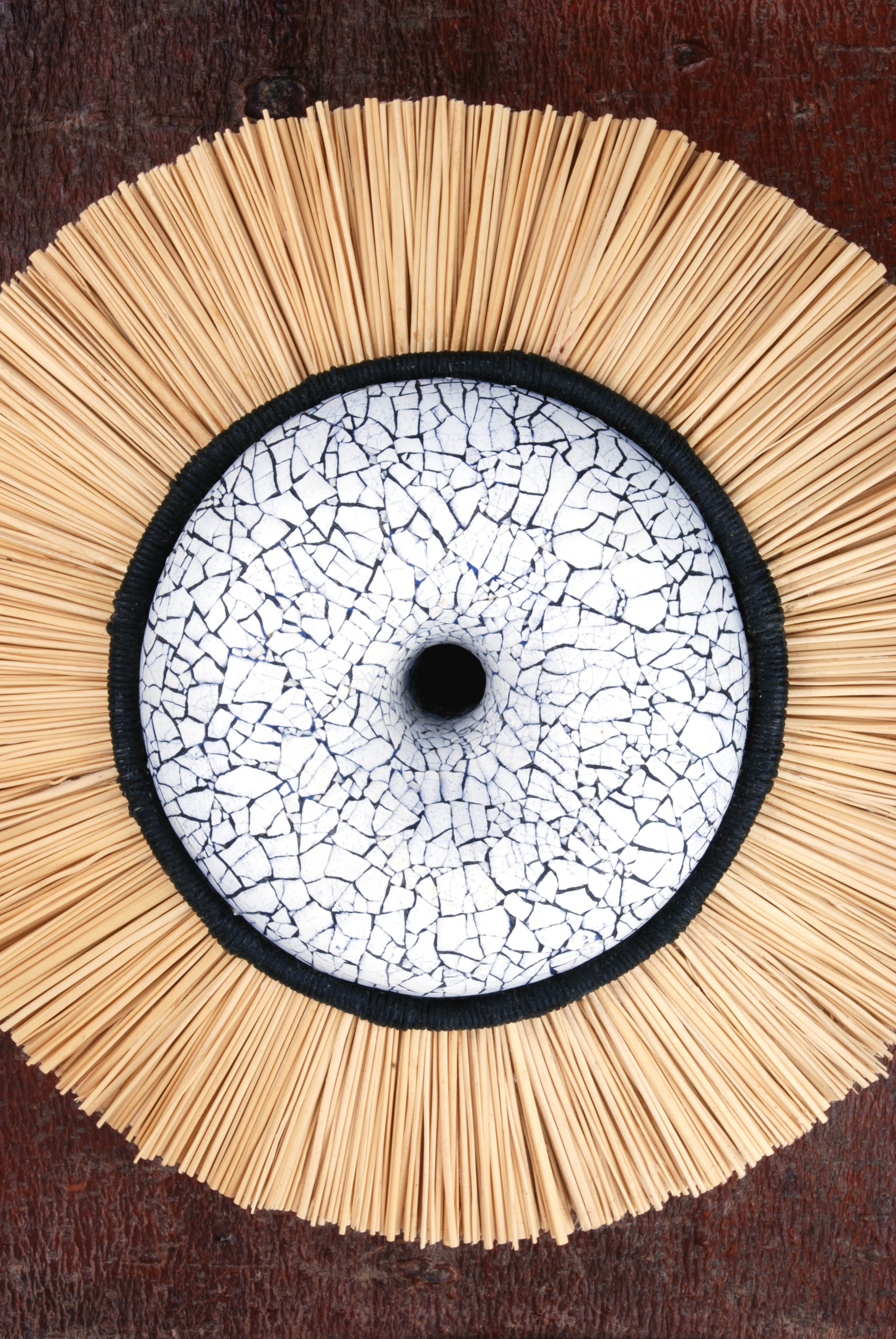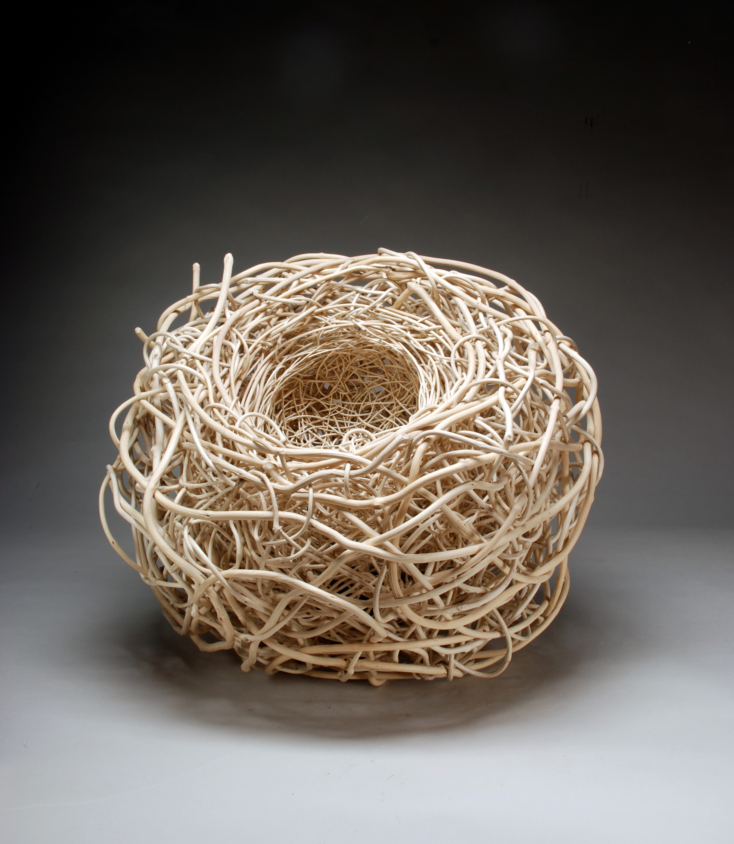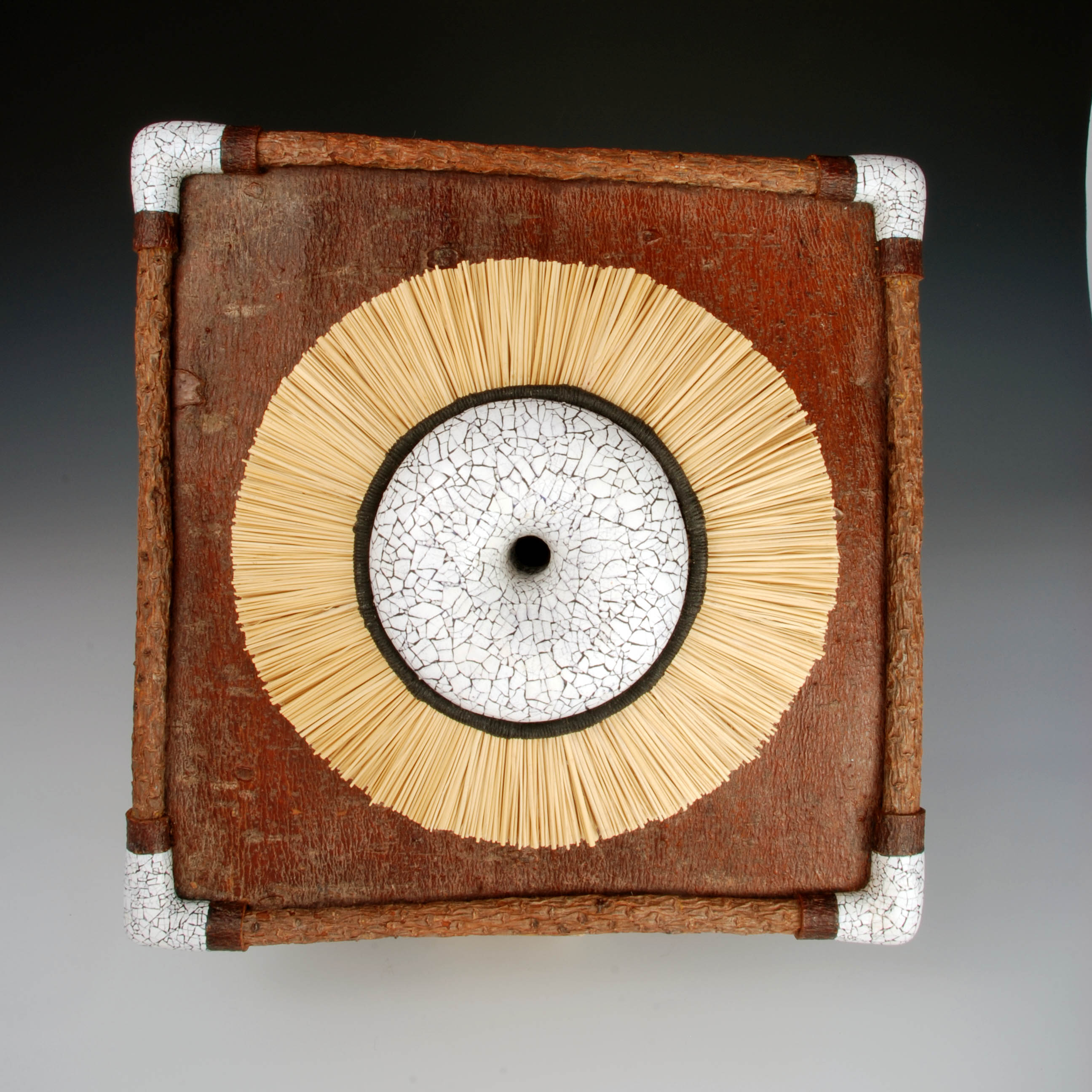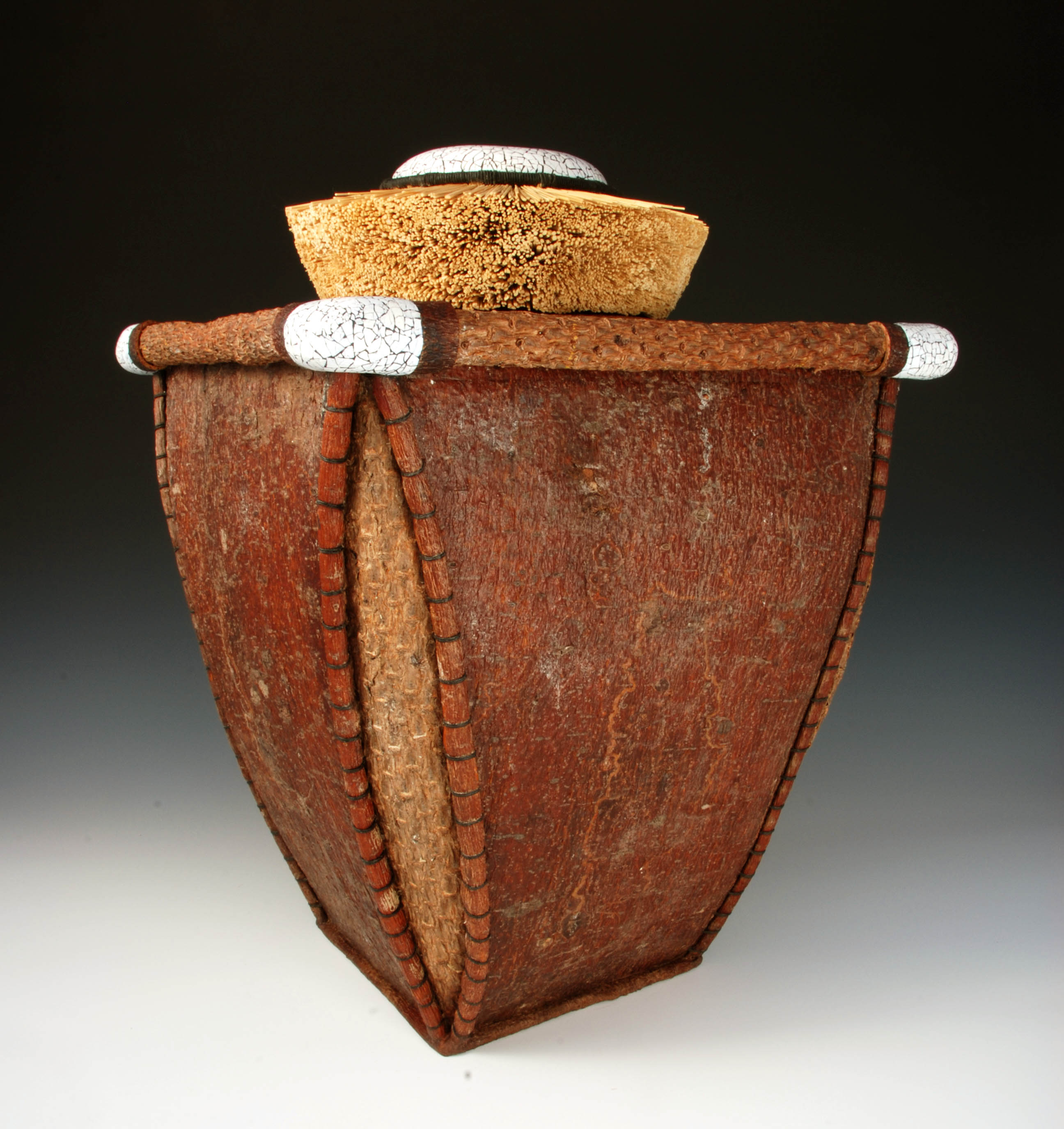 “Container 1-2014” white and ponderosa pine bark, broom corn, eggshells, waxed linen 17"h x 13.5"w x 13.5"d