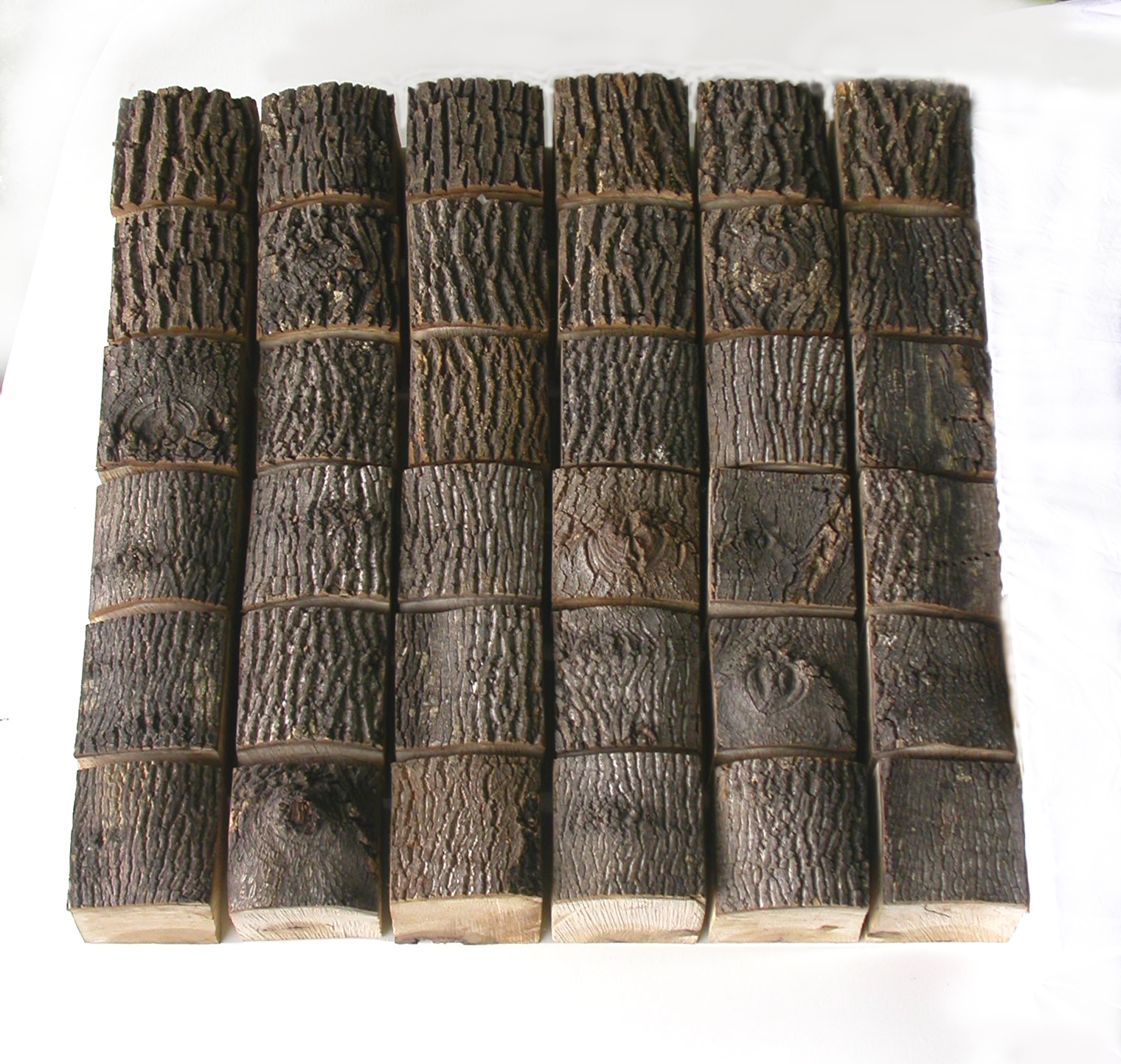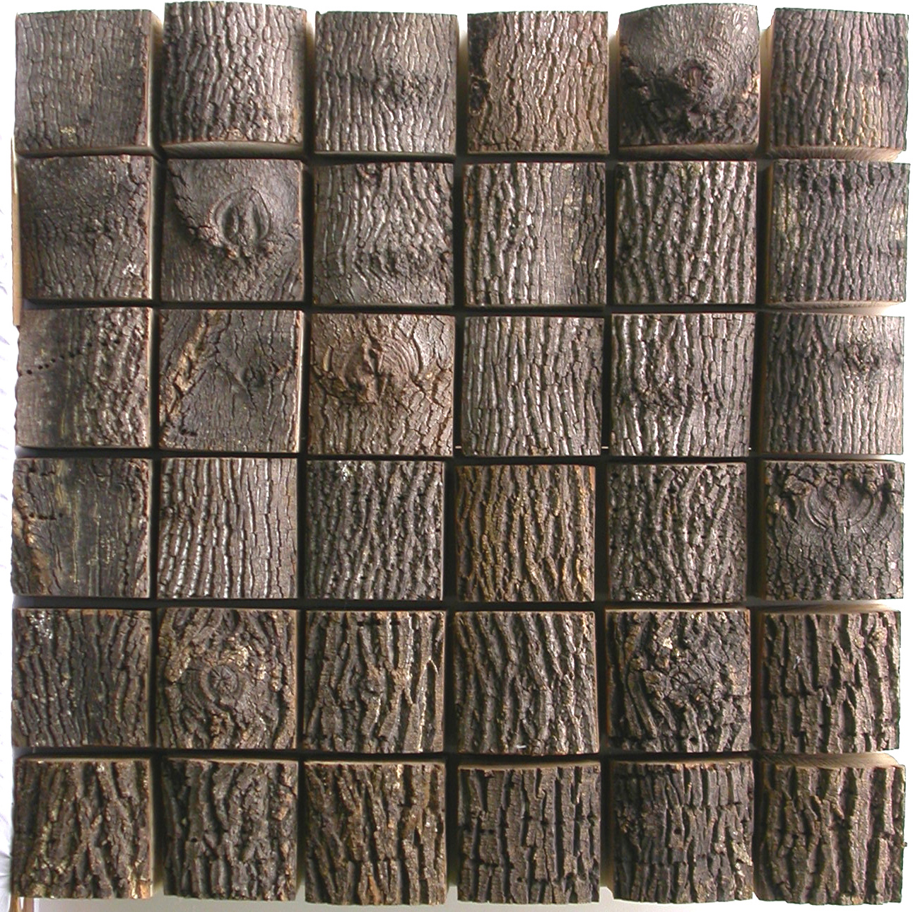 "Quilt" tulip poplar bark and wood on base 41" x 41" x 8" 2007 this weighs about 175 pounds and is in two pieces for transportation and handling $7000