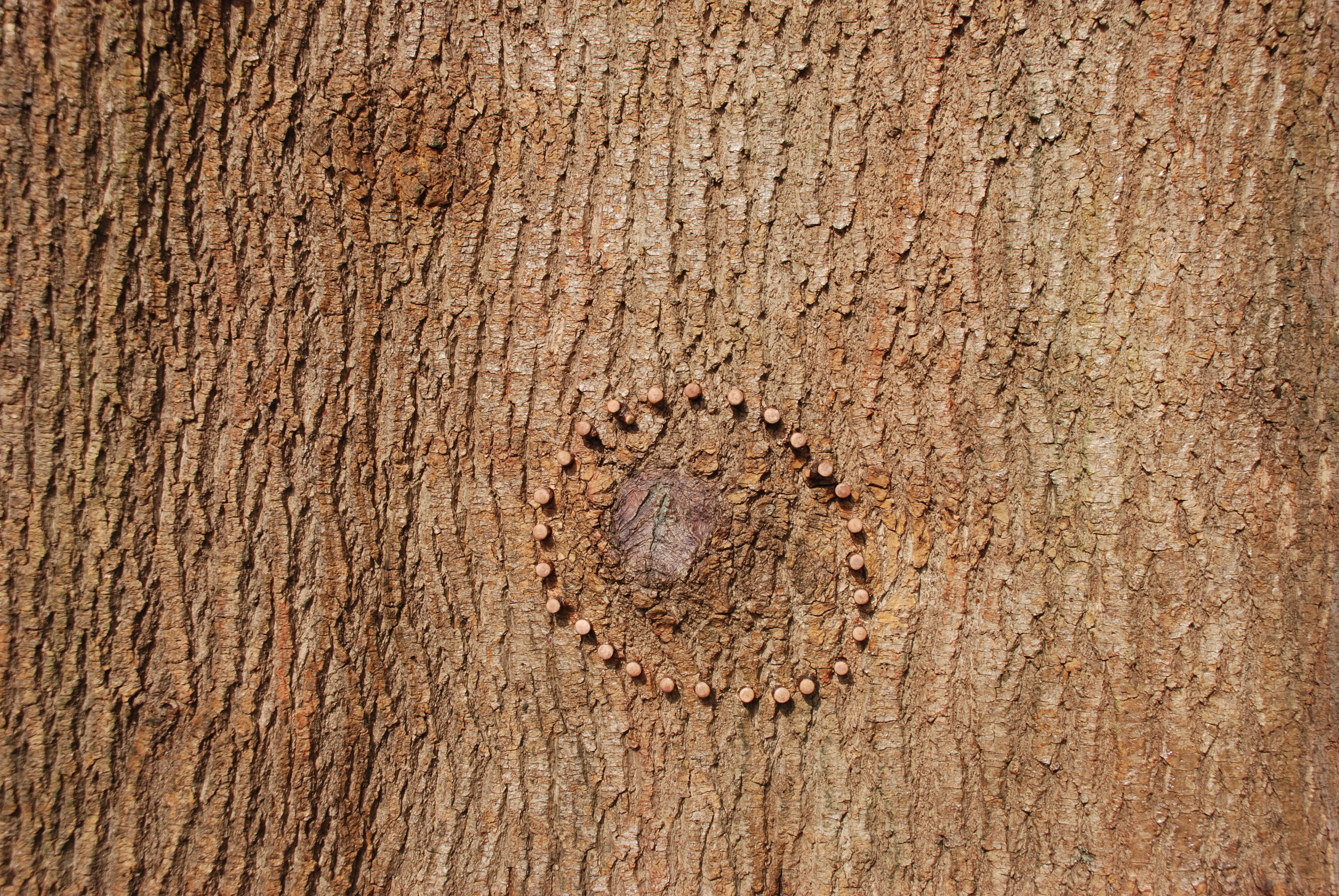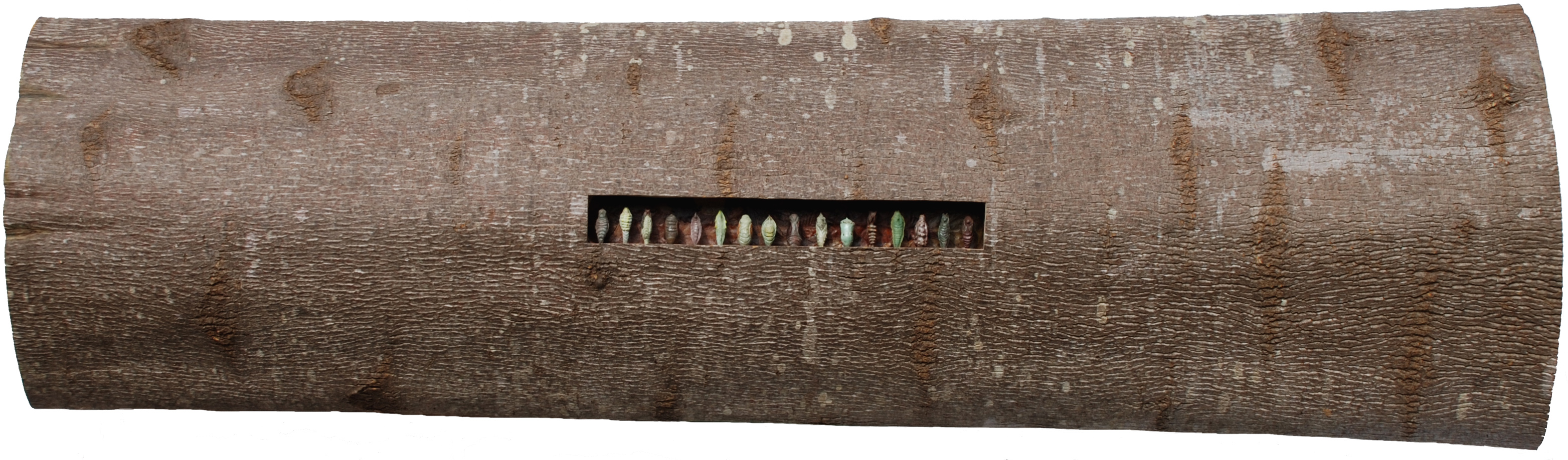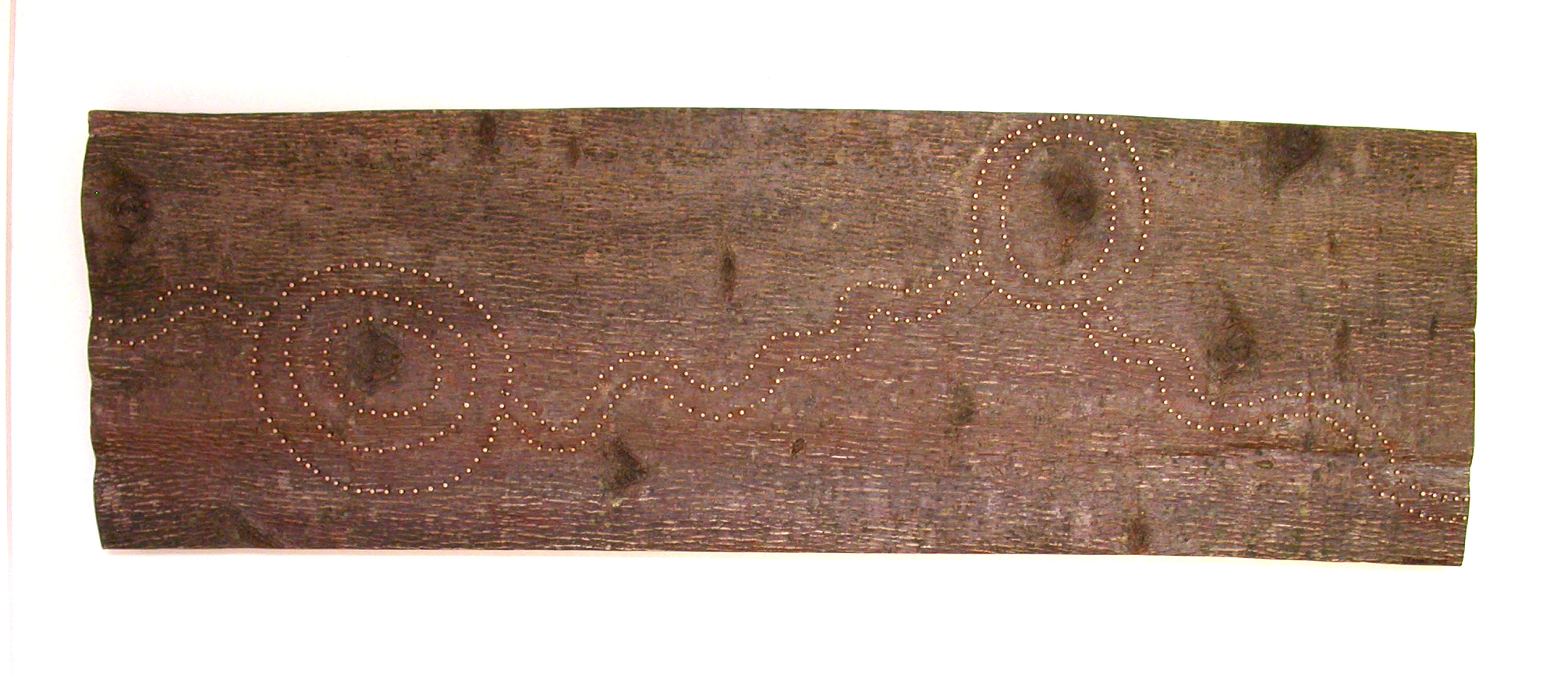 "Map V" tulip poplar bark, sweet birch pegs, 60"w x 19"h x 2"d 2007 $3000