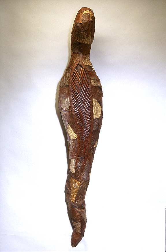 "Companion for Winter" various barks, sweet birch twigs, brads, paint, 43"h x 8"w x 8"d 2005 $4500