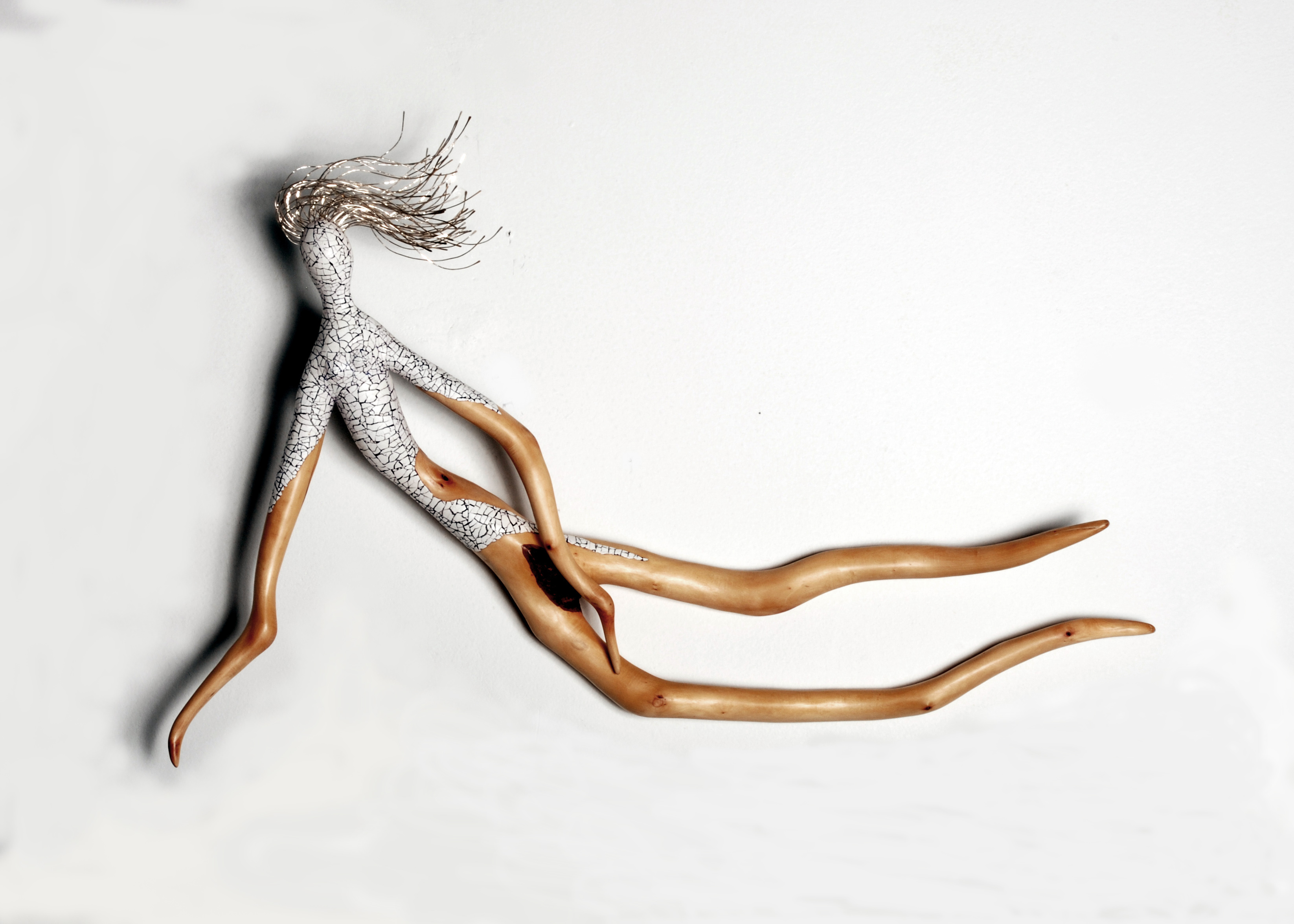 "Guardian II" white pine bark, maple, birch pegs, wood burned,