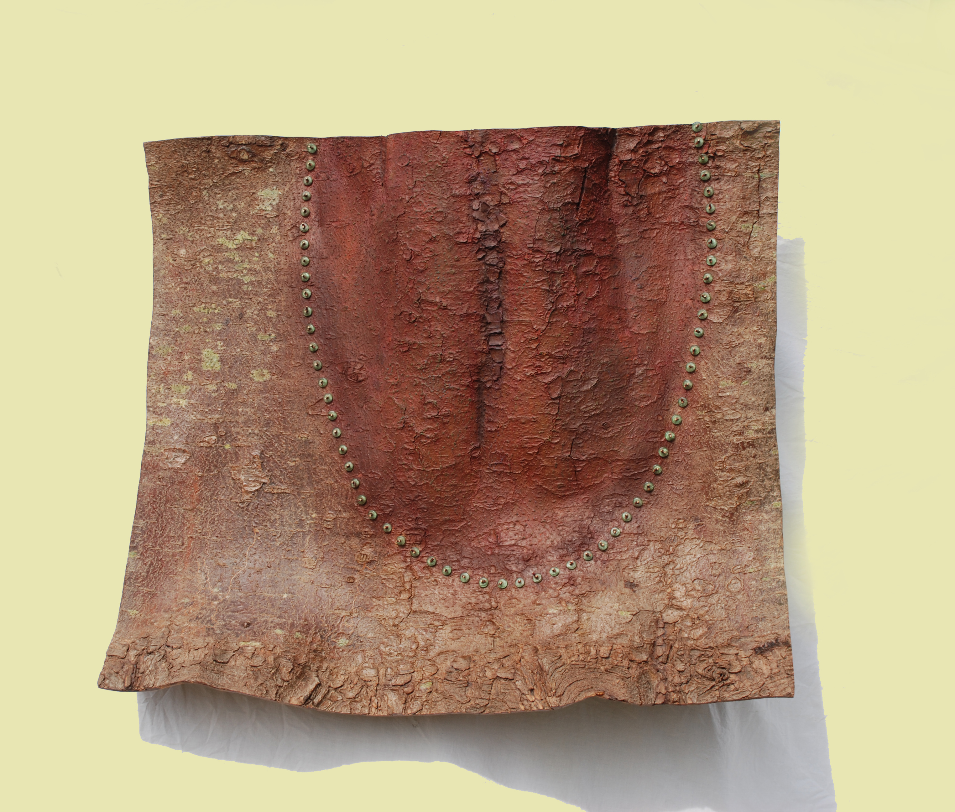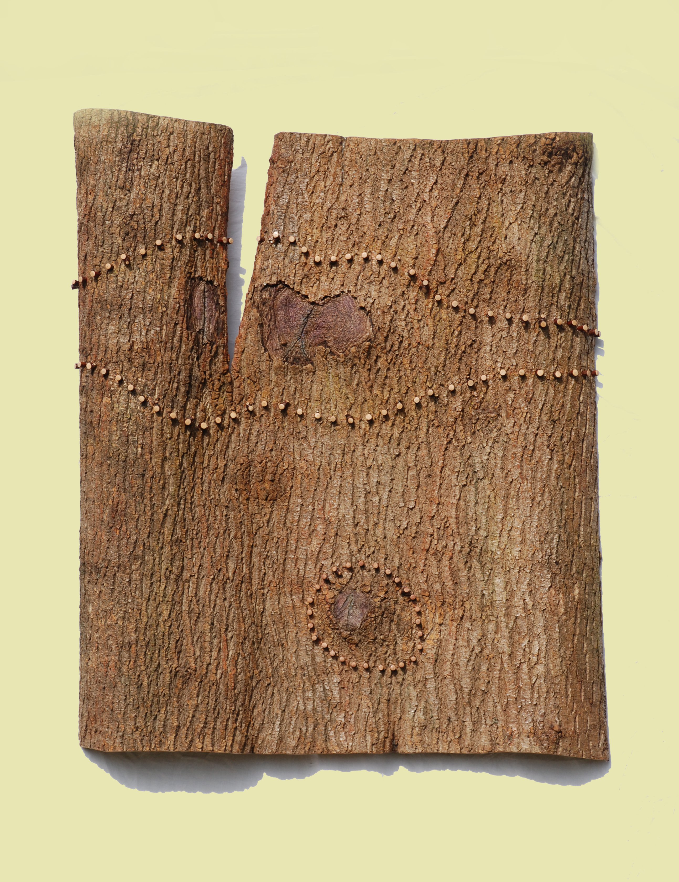 "Map VI" tulip poplar bark, sweet birch pegs, paint 26"w x 31"h $1500