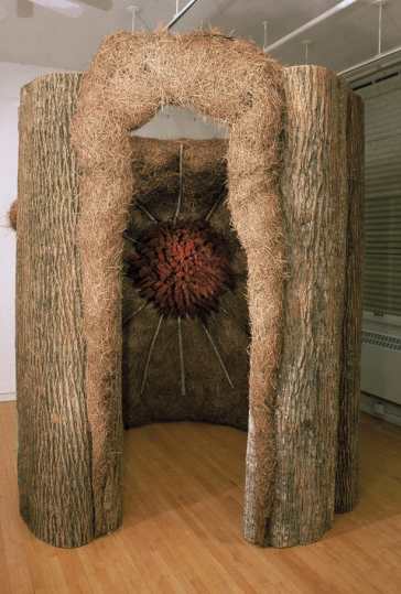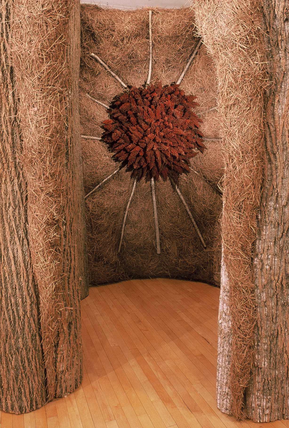 “Bark Shrine," McGuffey Art Center, Charlottesville, VA, tulip poplar bark, pine needles, sumac berry clusters, aialanthus, 8'dia x 9.5'h, 2002