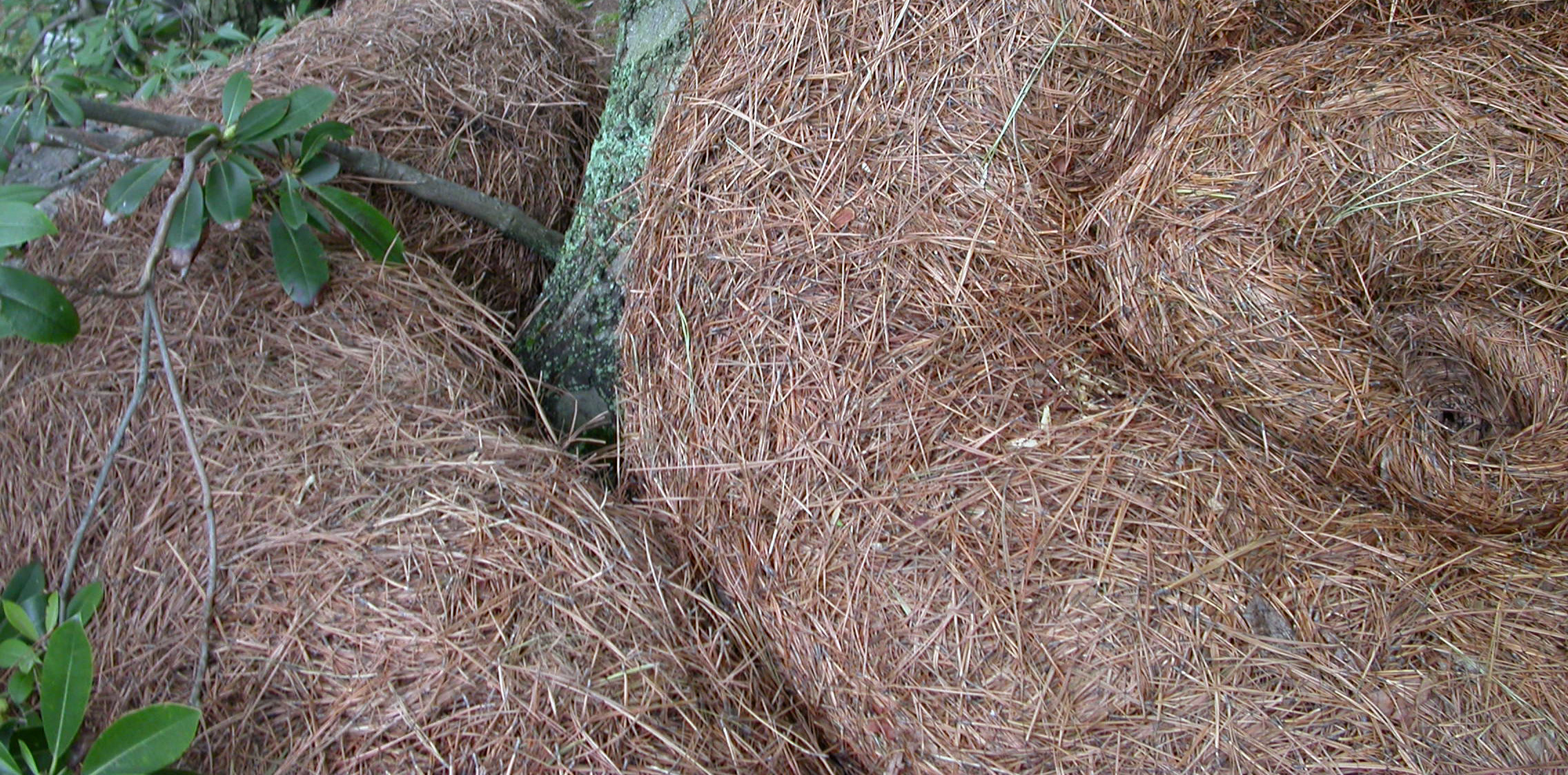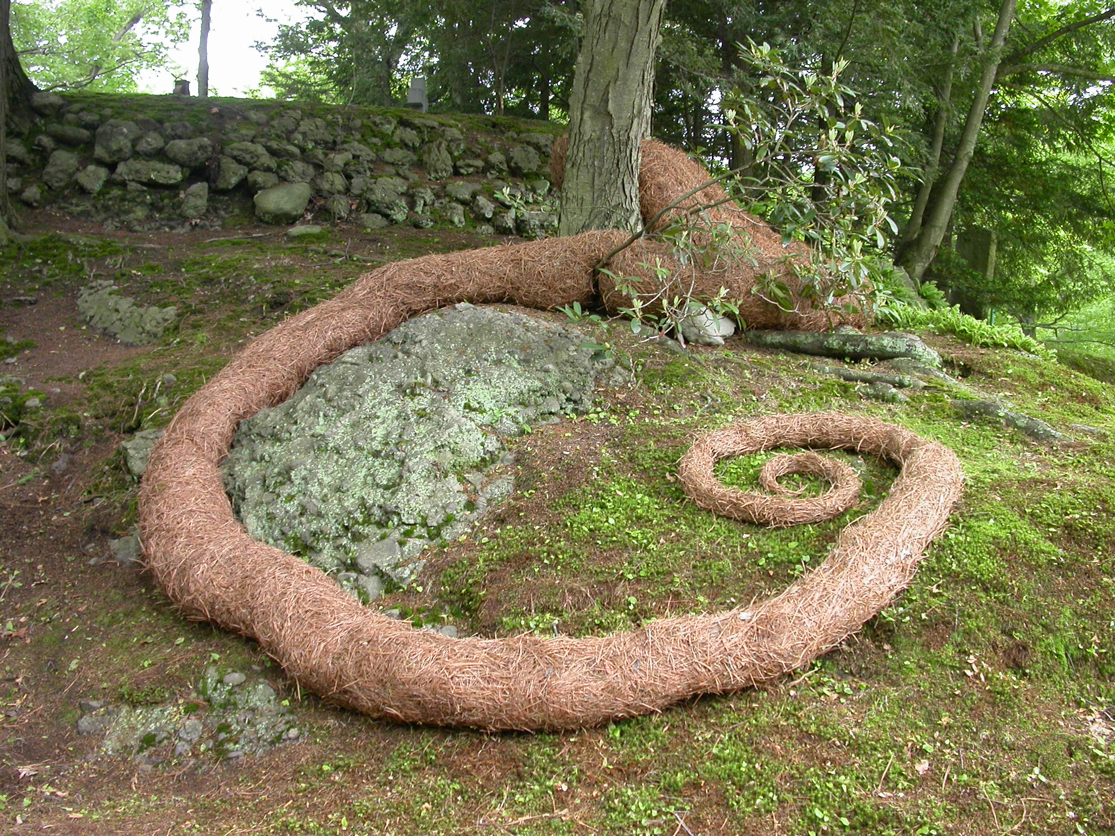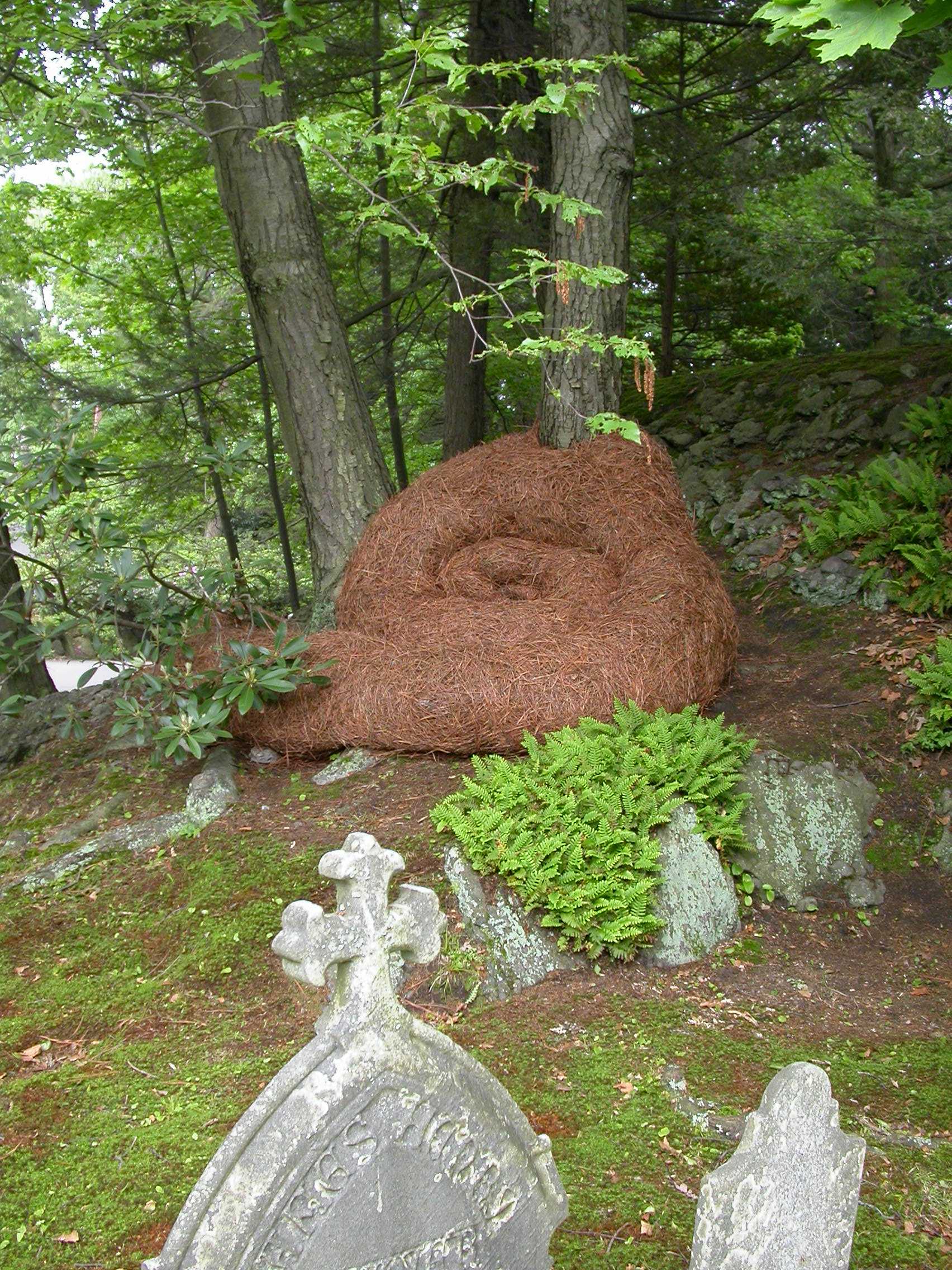 “PinaSpiral”, Forest Hills Cemetery, Boston, MA, pine needles in bird netting, overall dimensions 15' x 18', 2003