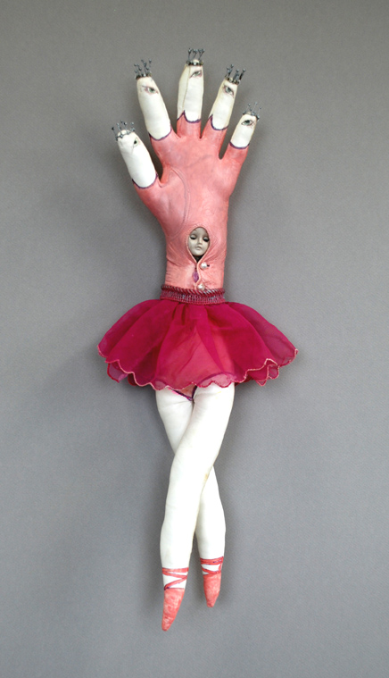 “Ballet Mum” old kid glove, doll head, wire and bead crowns, fiber, paint