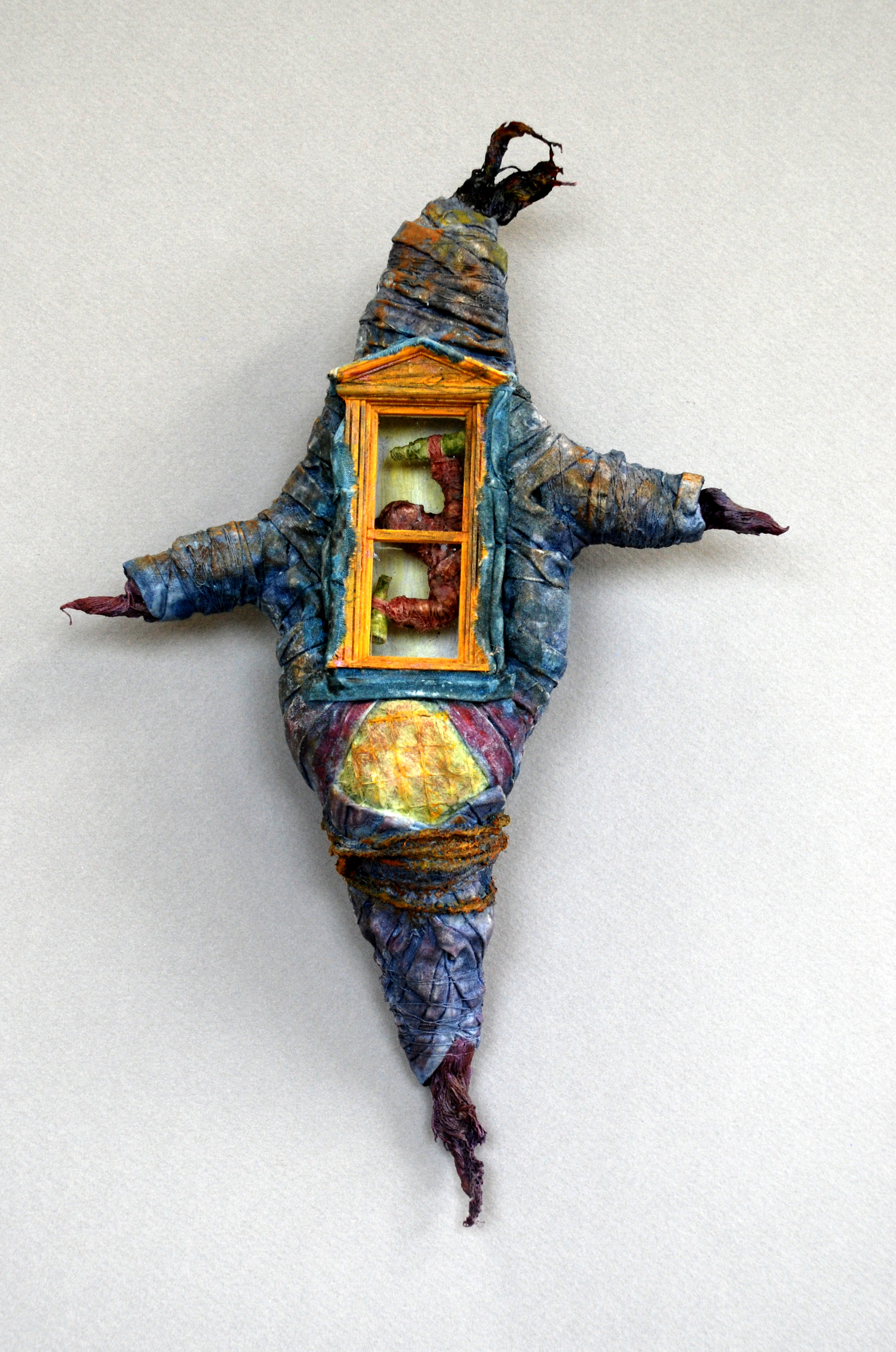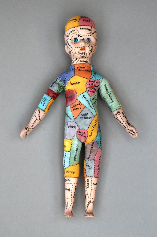 “Inner Life of a Doll” repurposed doll, paint, fiber