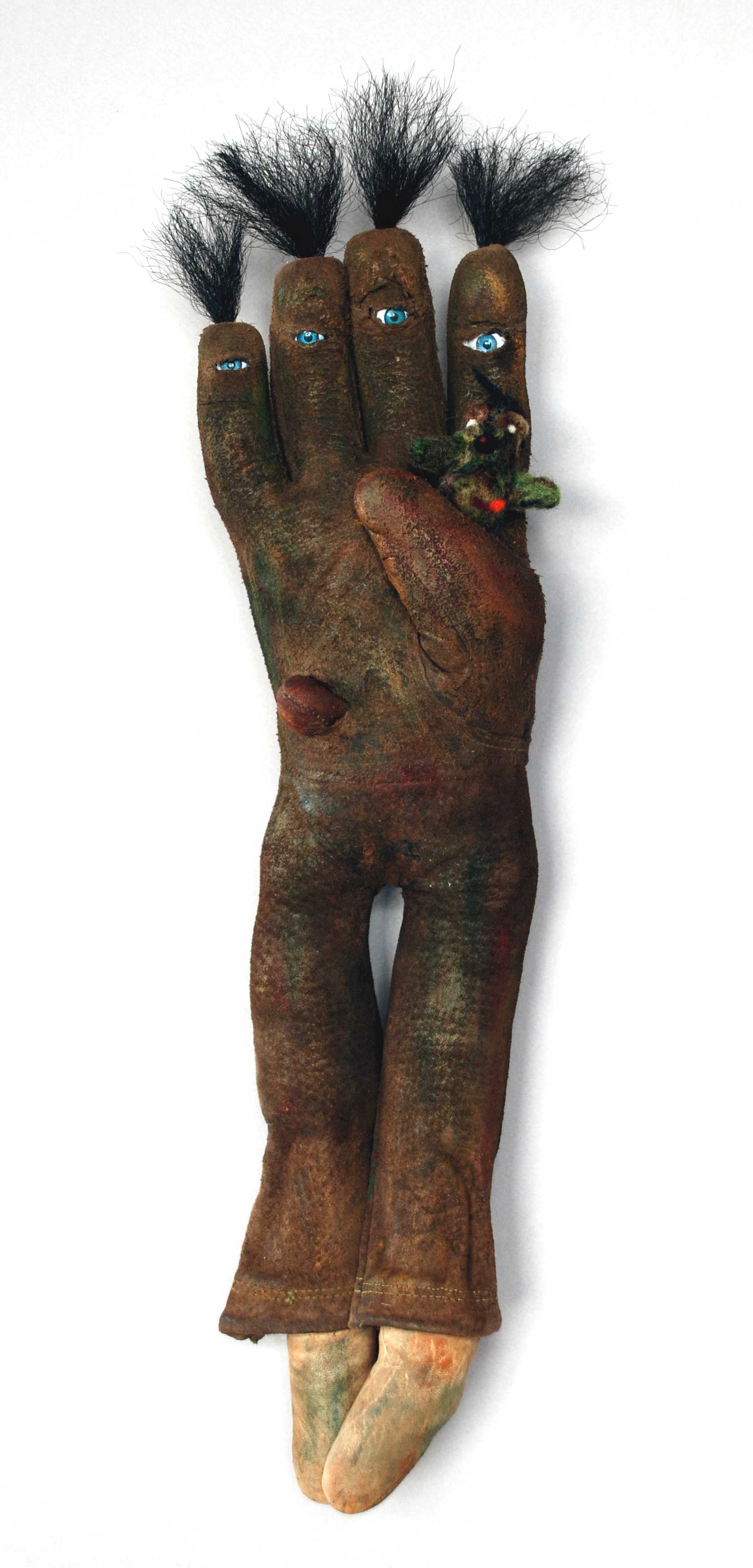 “Beast” the other used work glove, yak hair, doll eyes, felt