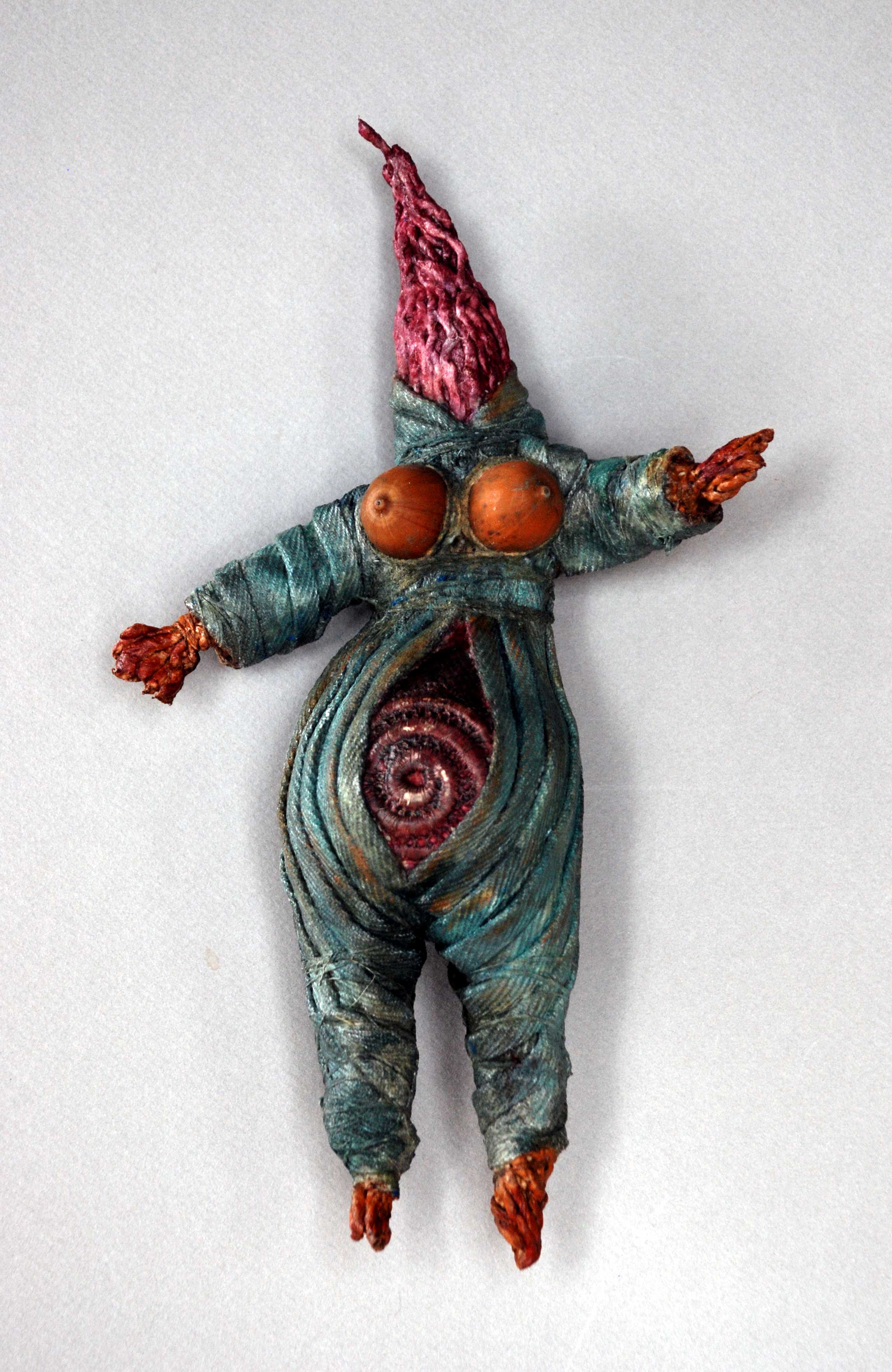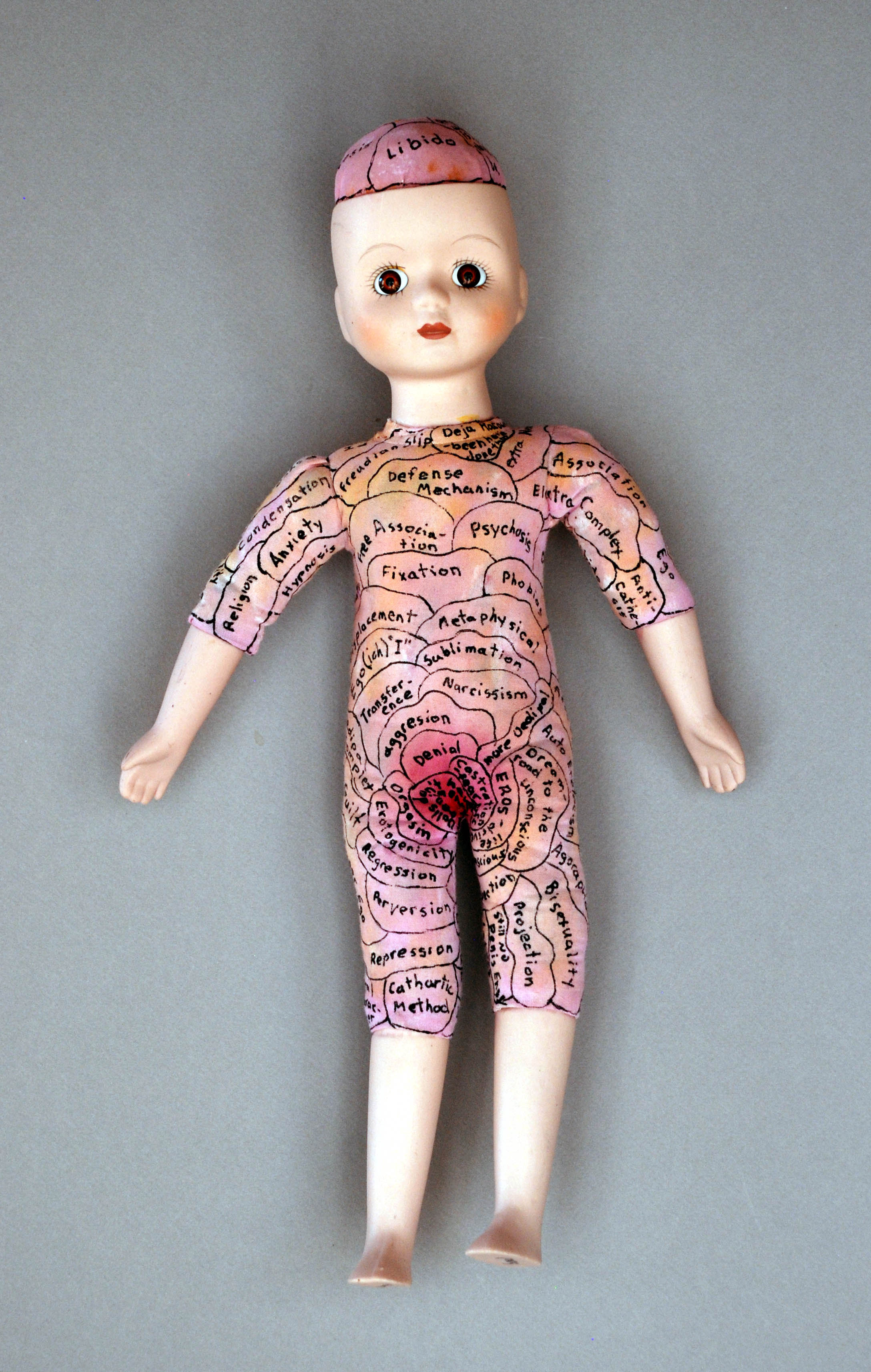 “the Doll According to Freud” repurposed doll, fiber, paint