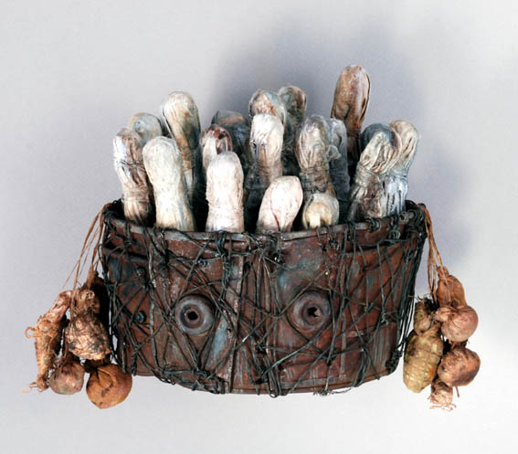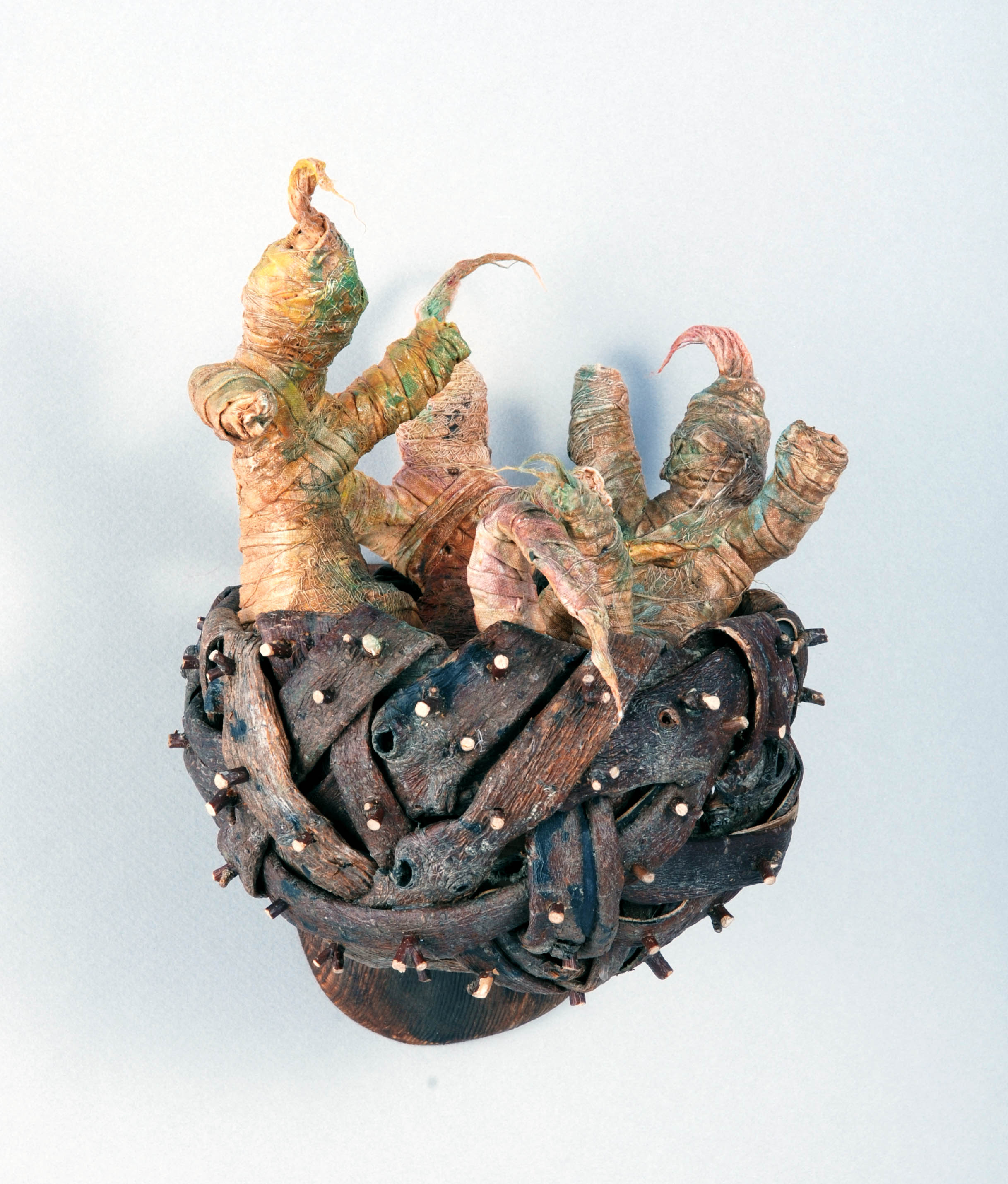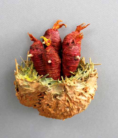 “Fledge Mums” broom corn, fiber, wood, paint, paper