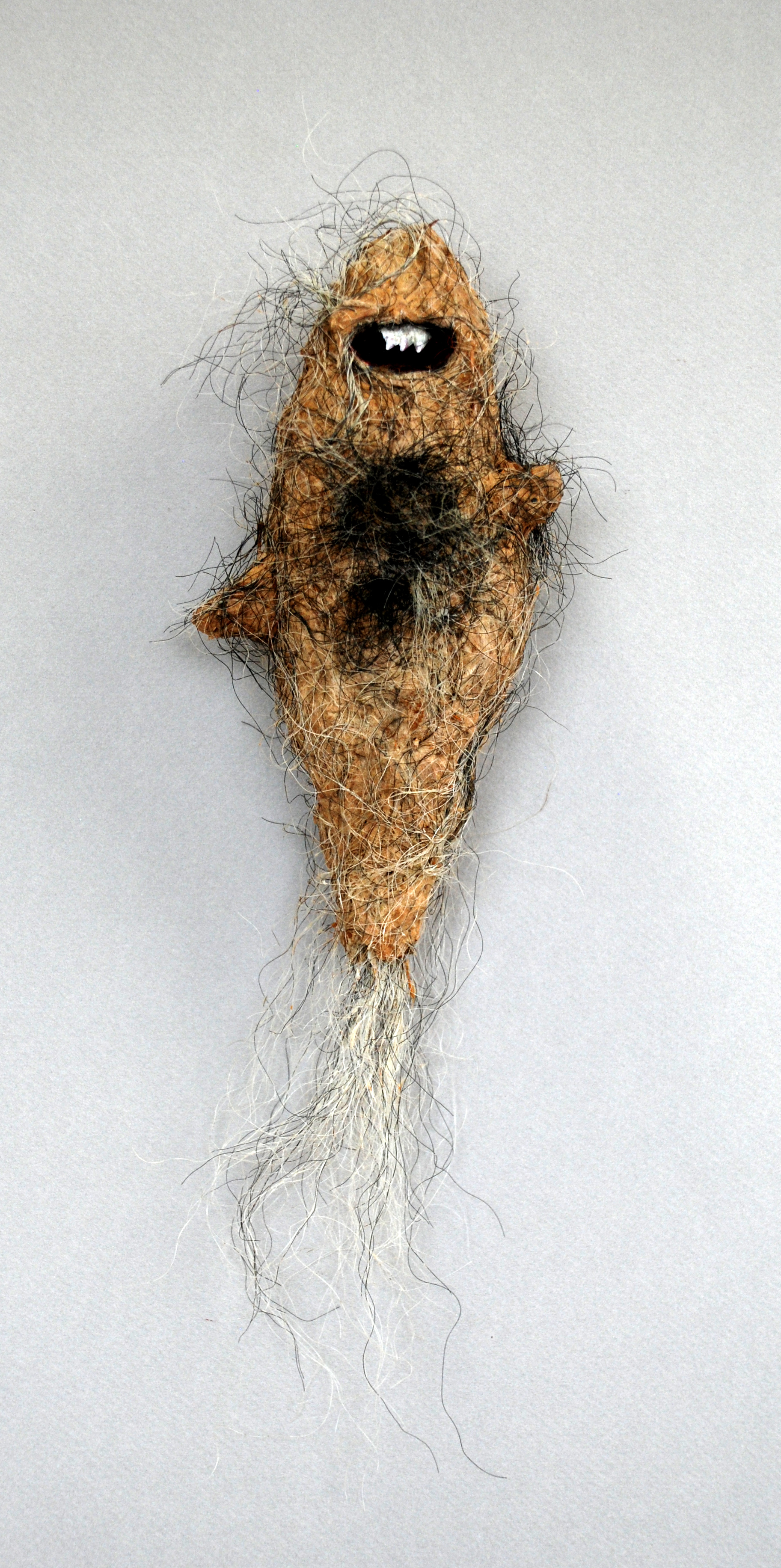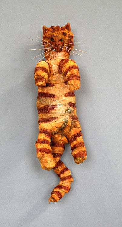 “Catamummy” fiber, paint brush whiskers, paint, clay