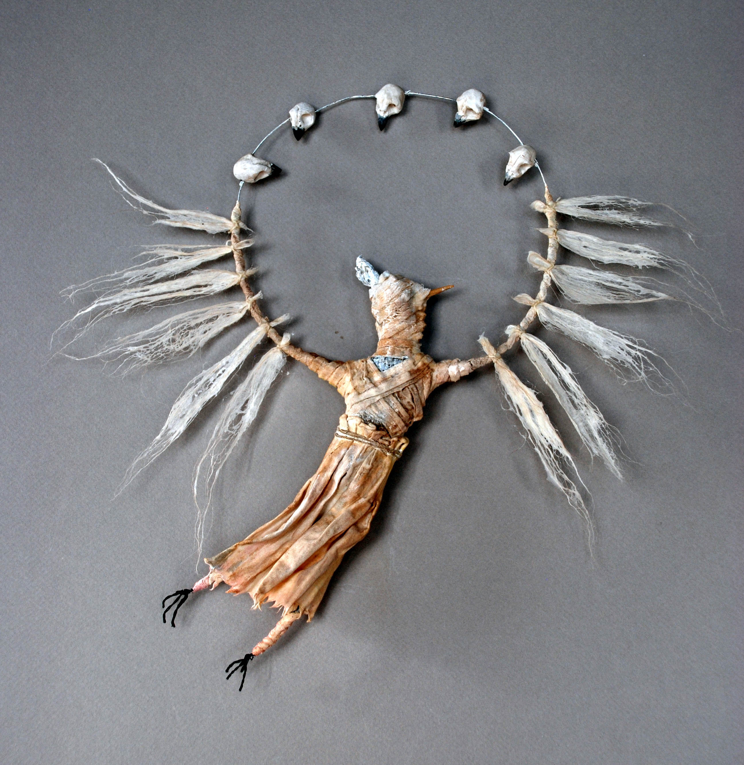 “Angel Juggling Her Duties” fiber, primo skulls, wire