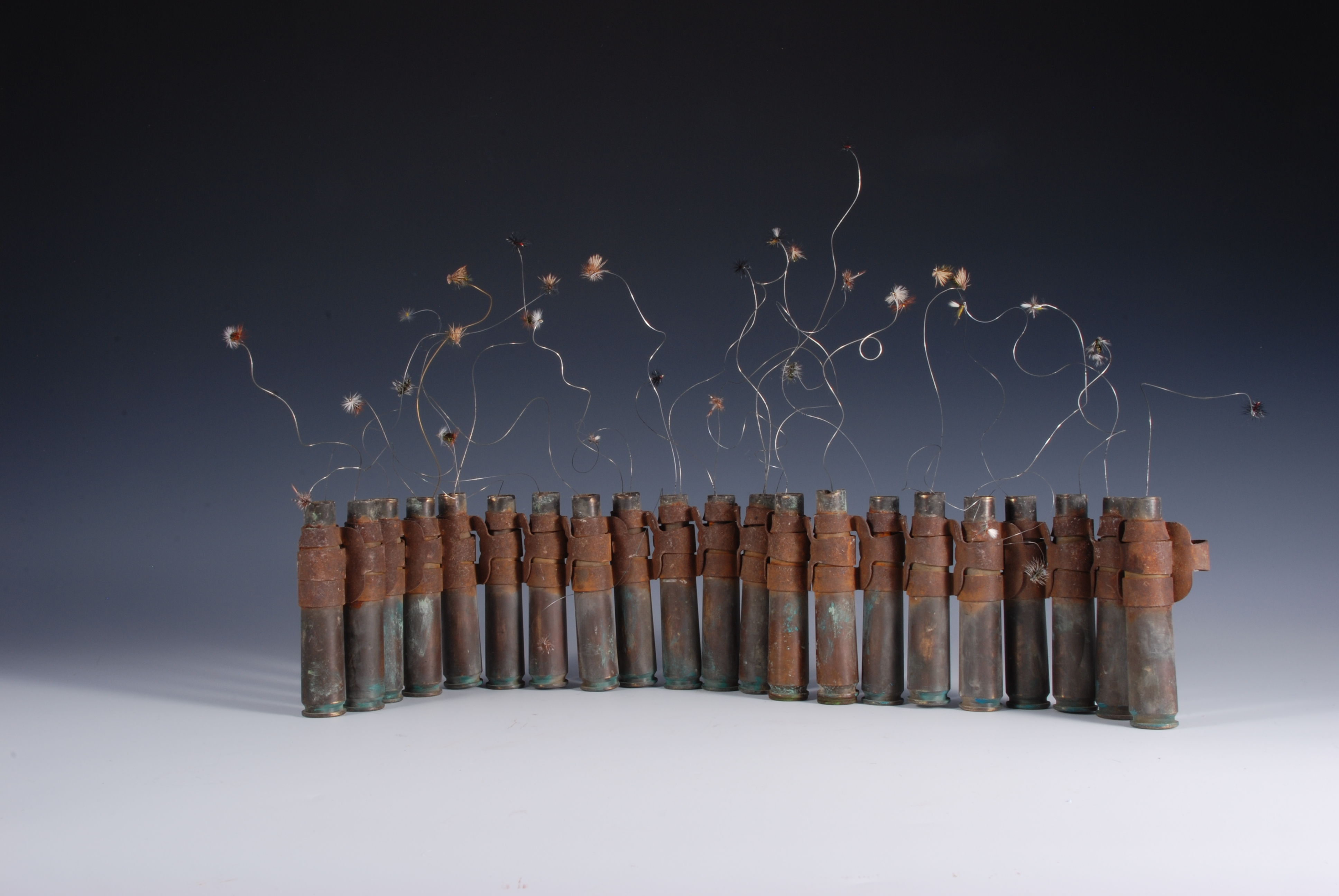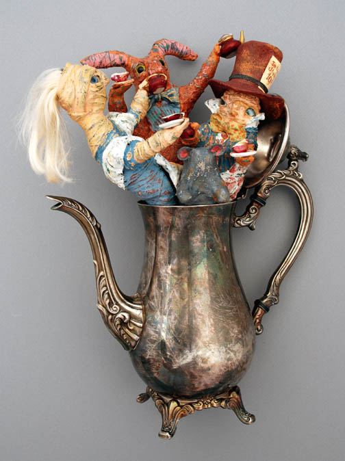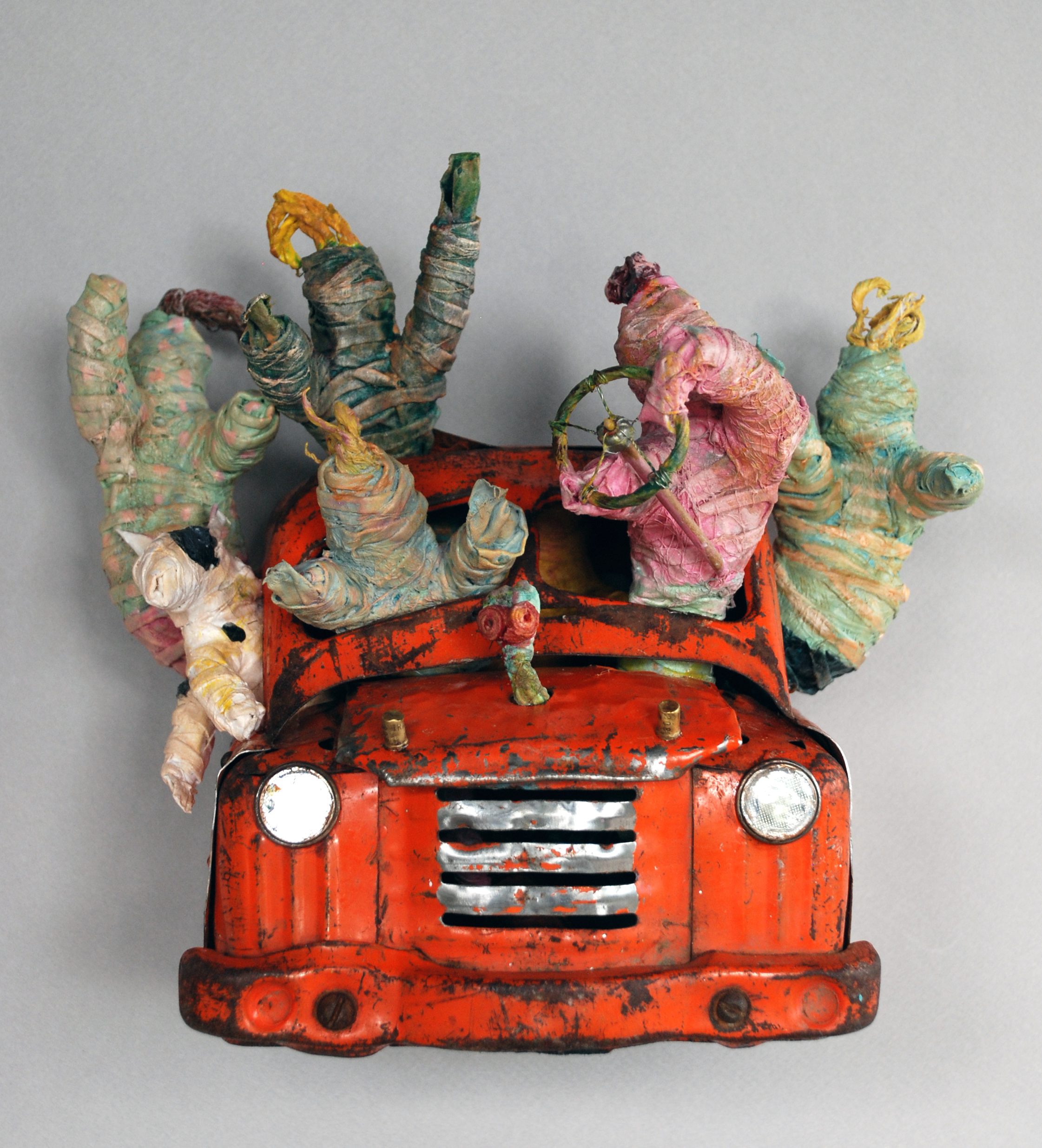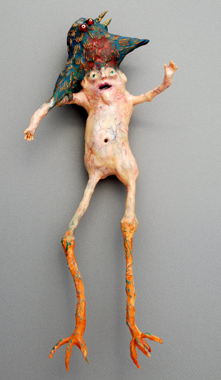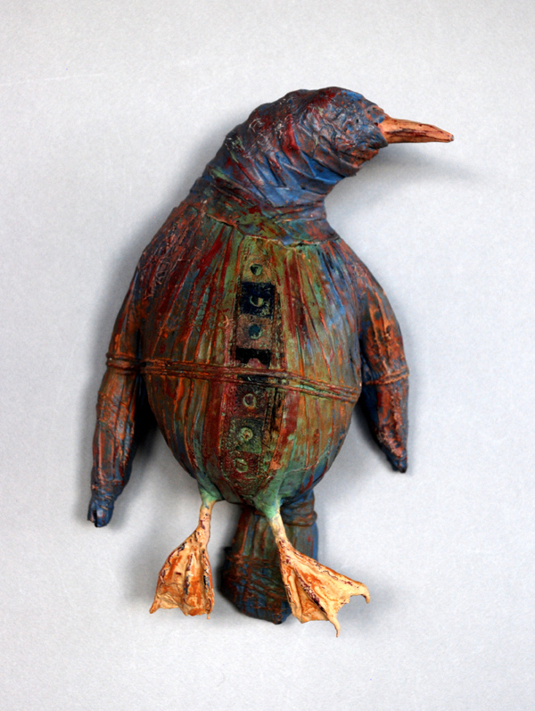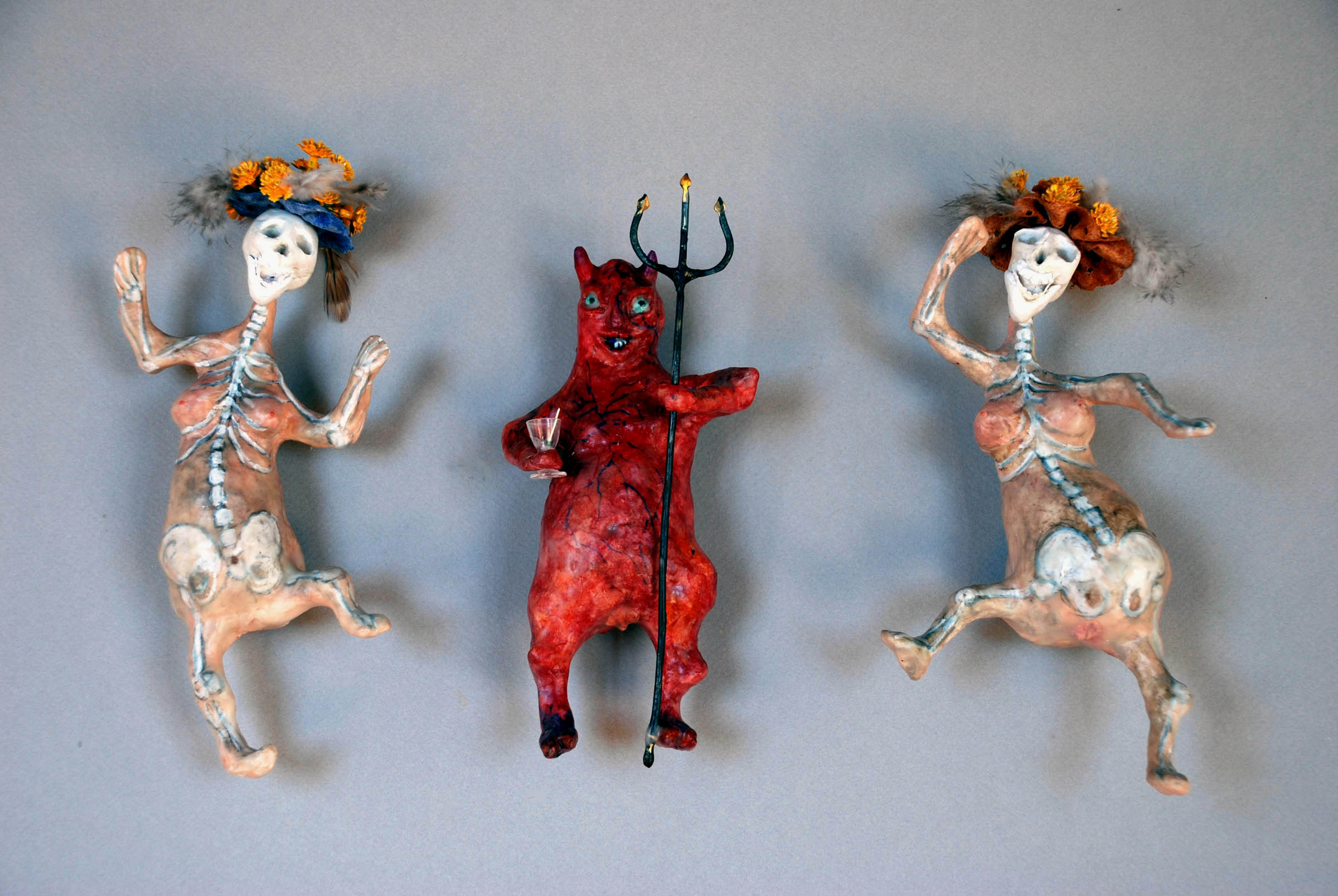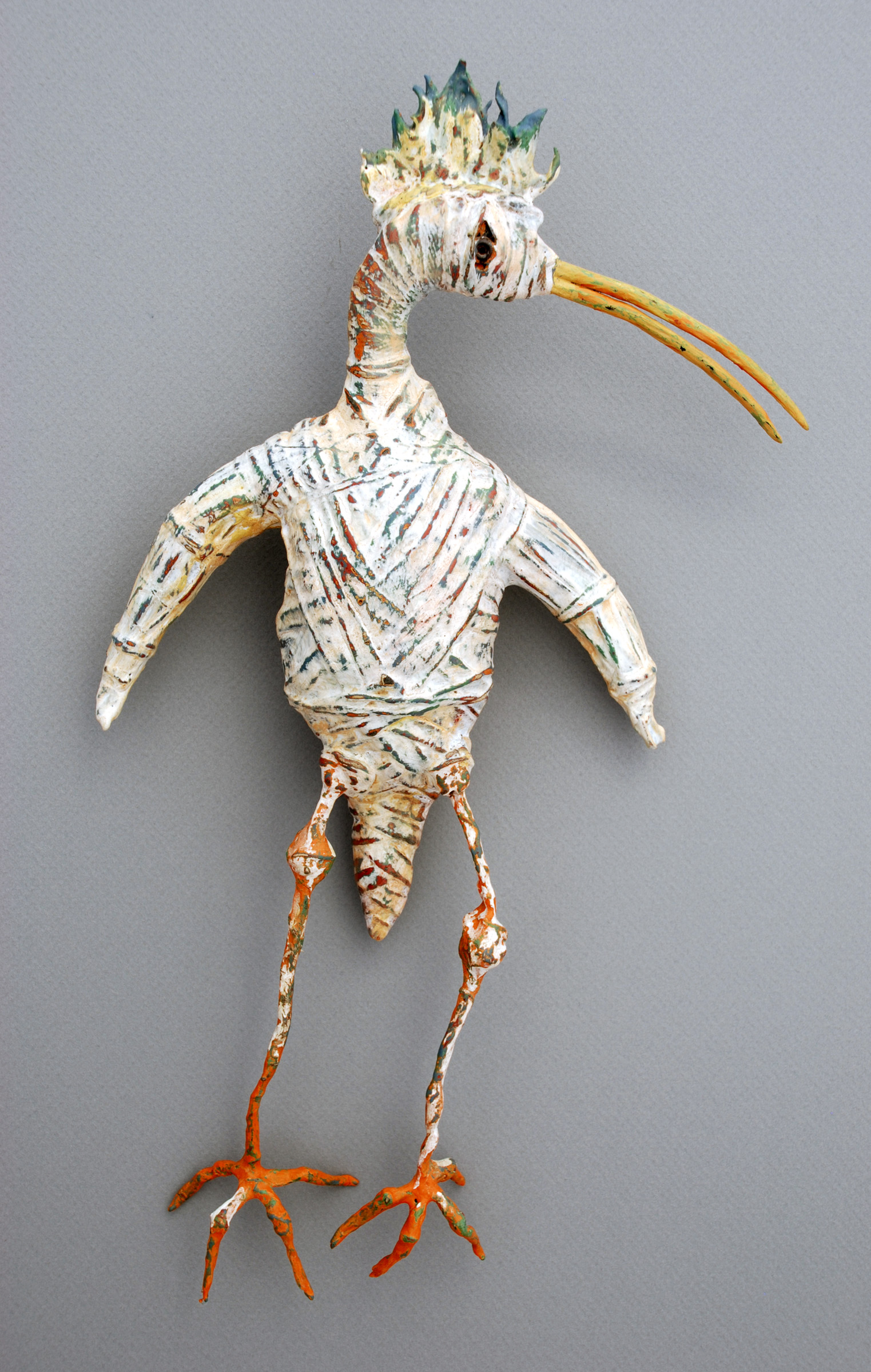 Most of the figures are started with a wire apperature, covered with tin foil and then paper mache, and then layers of fiber embedded with wheat paste,then finally layers of chalk paint which I then sand through.