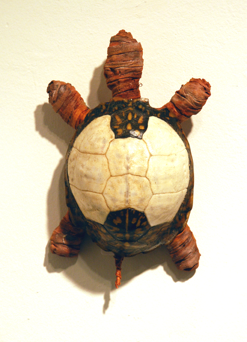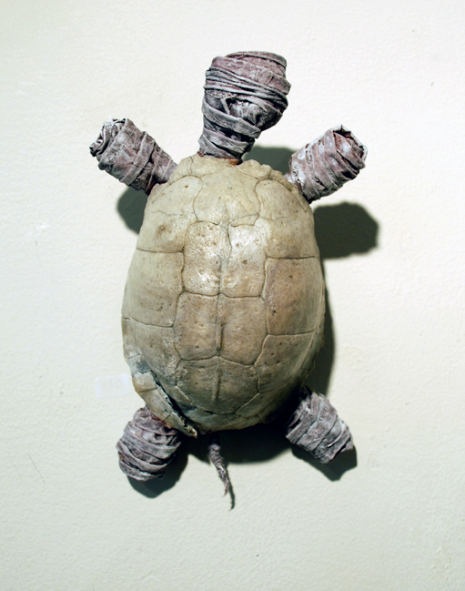 "Turtle Mummy" turtle shell, fiber, paint