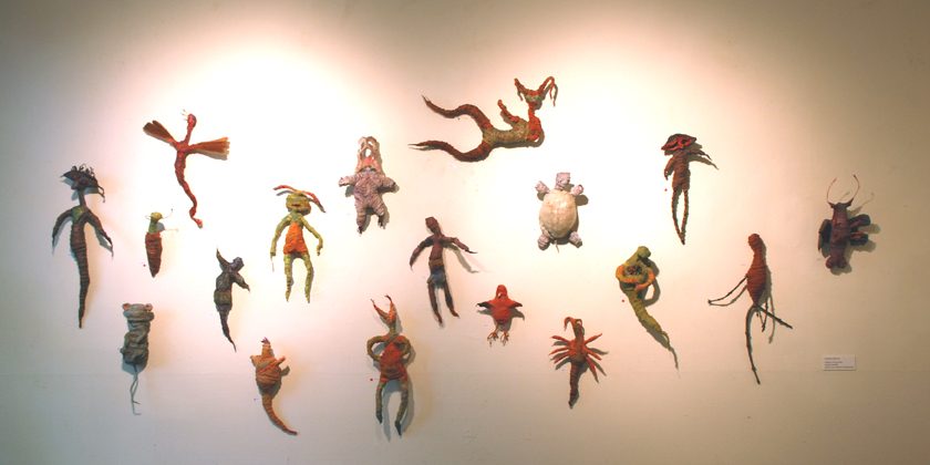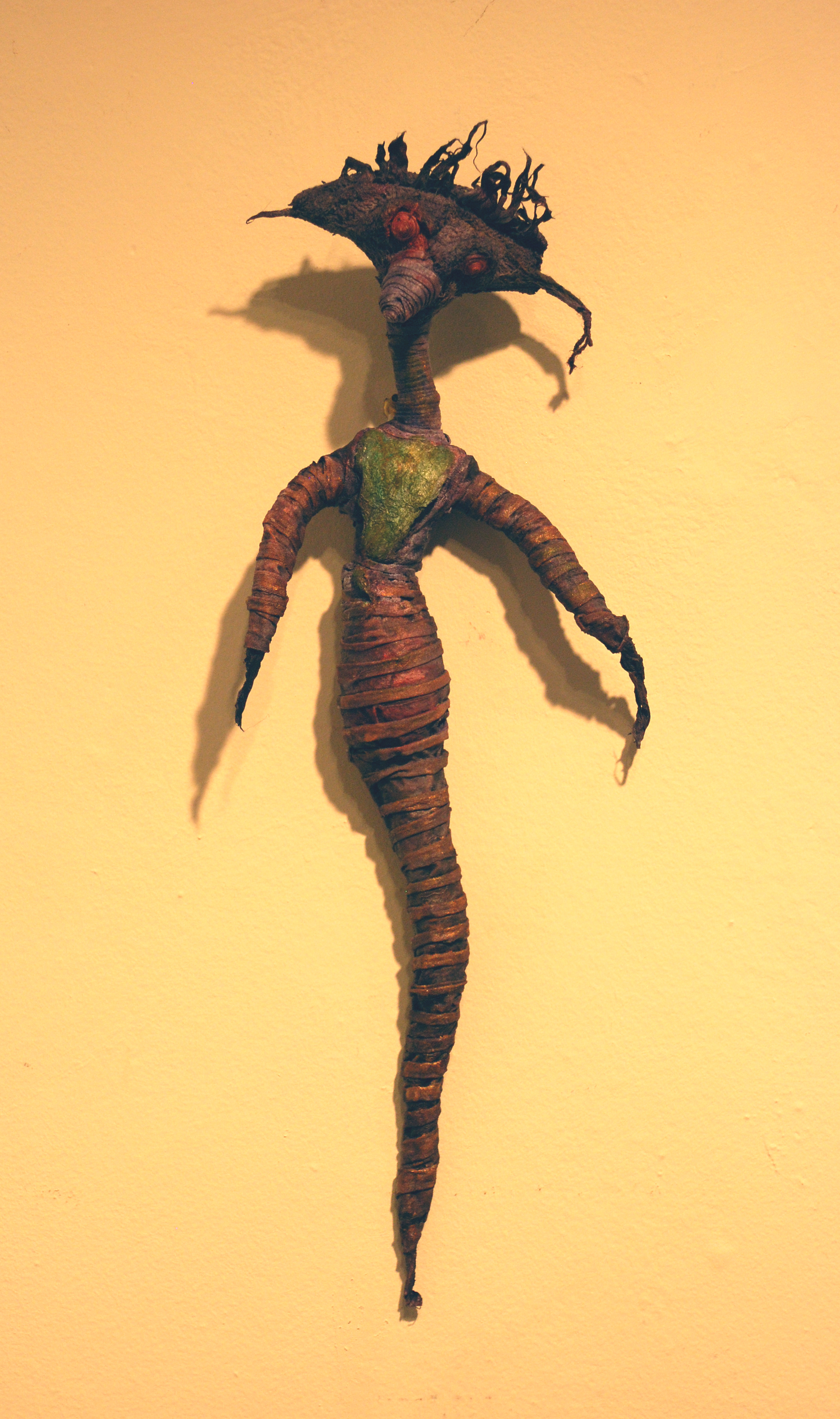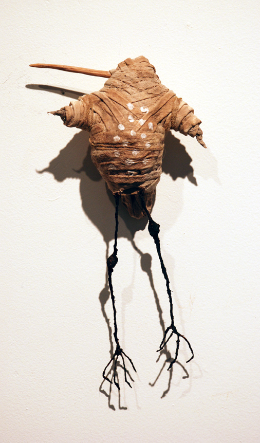 "Crested Fly Mummy", fiber, wire, paint, $90