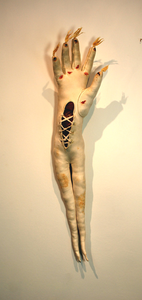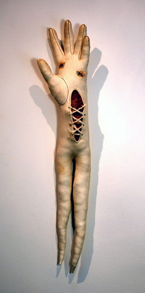 "Left Handed Kid", kid glove from my mother's estate, paint, fiber