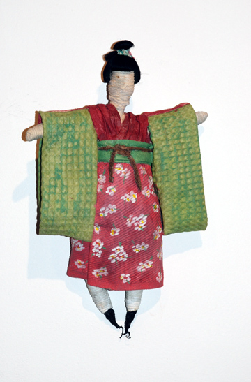 "Kimonomummy I" fiber, found hair piece, paint $125