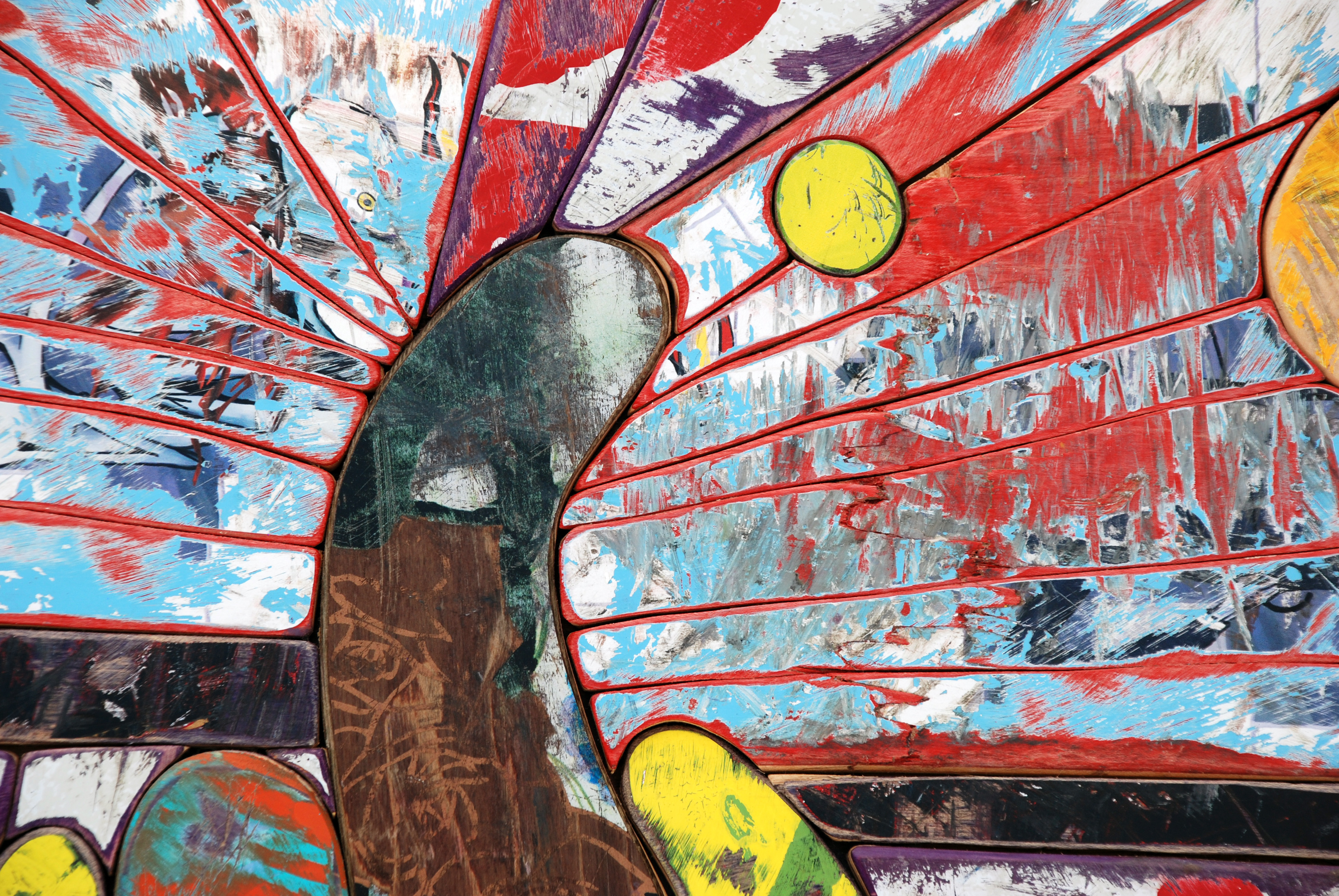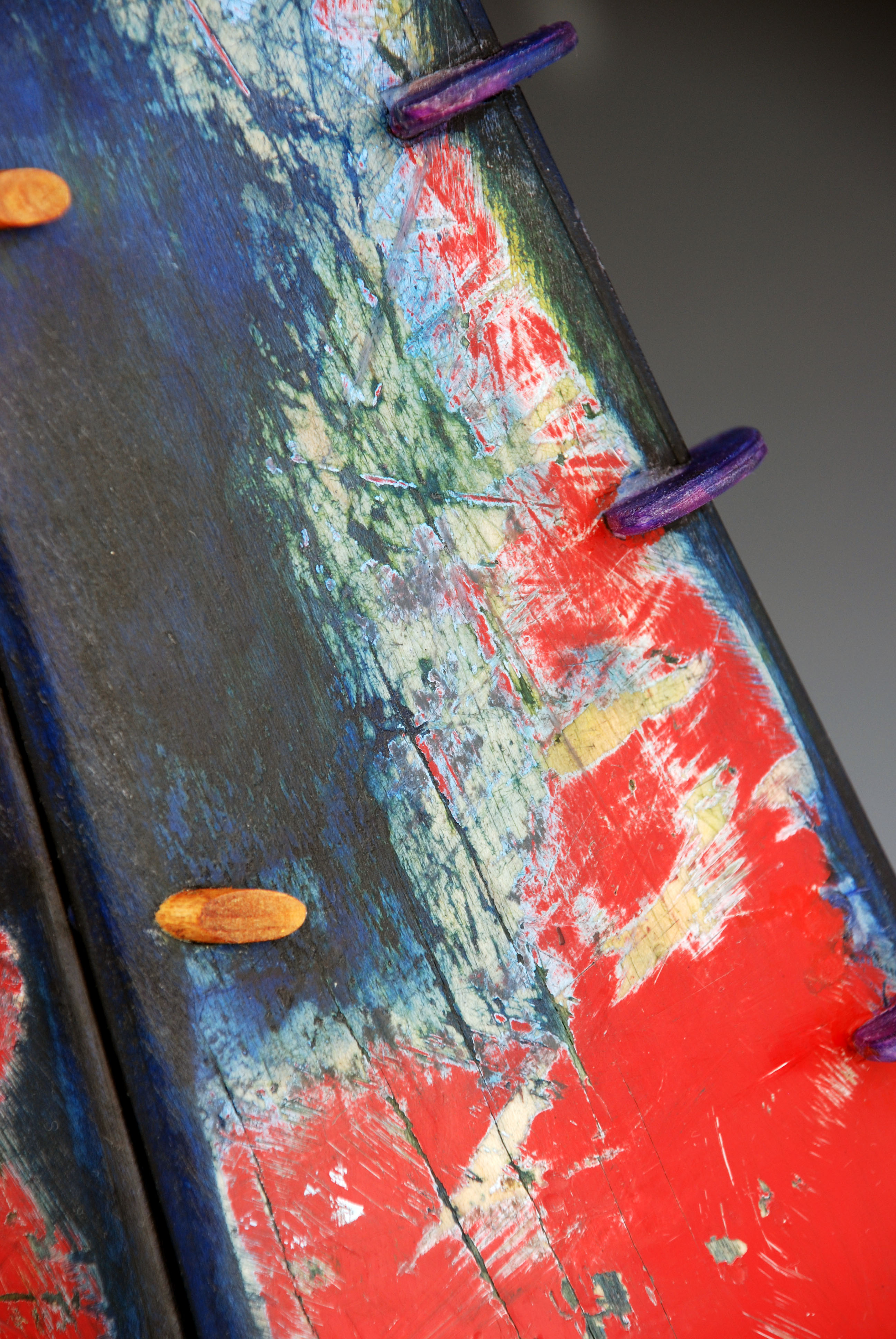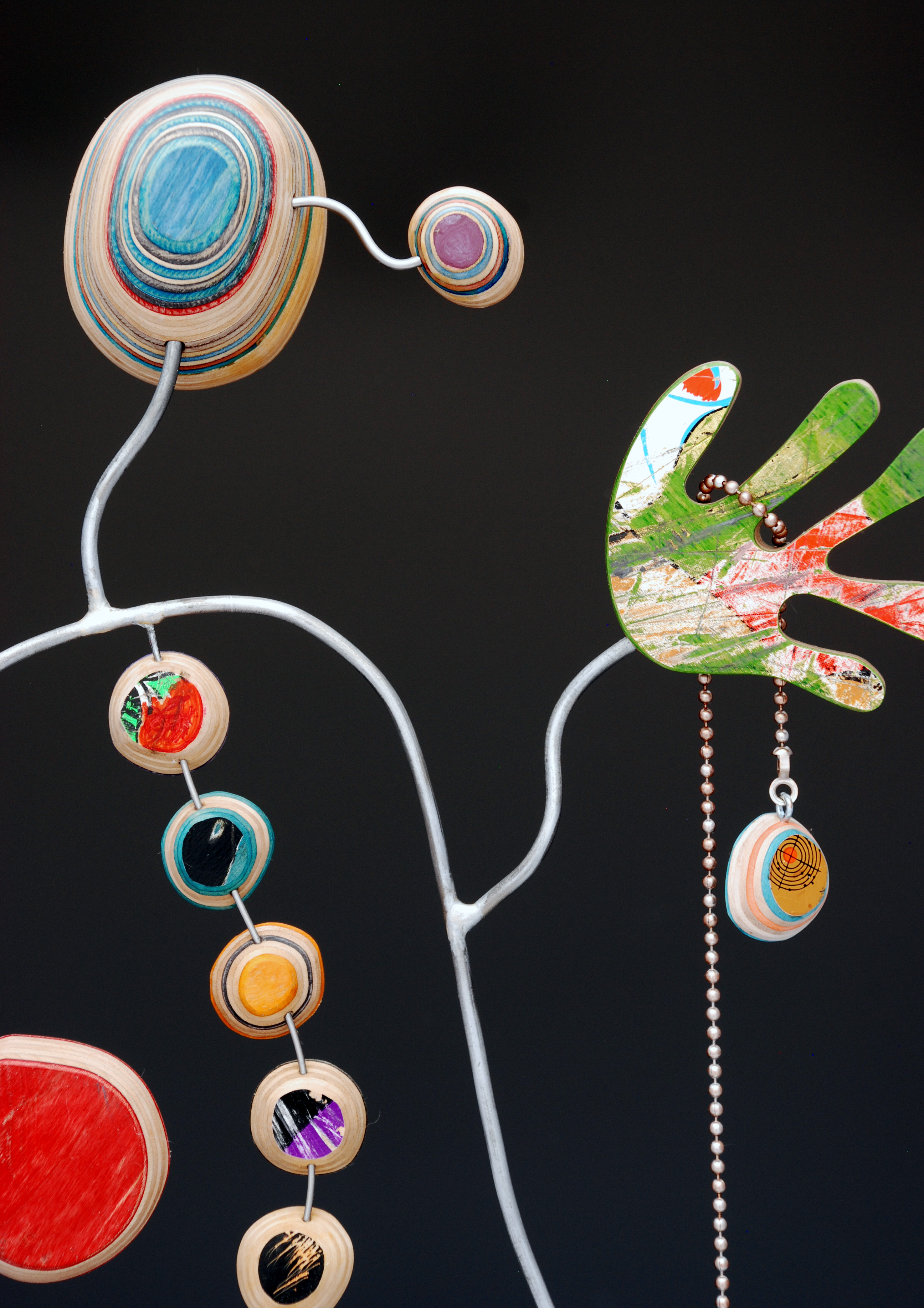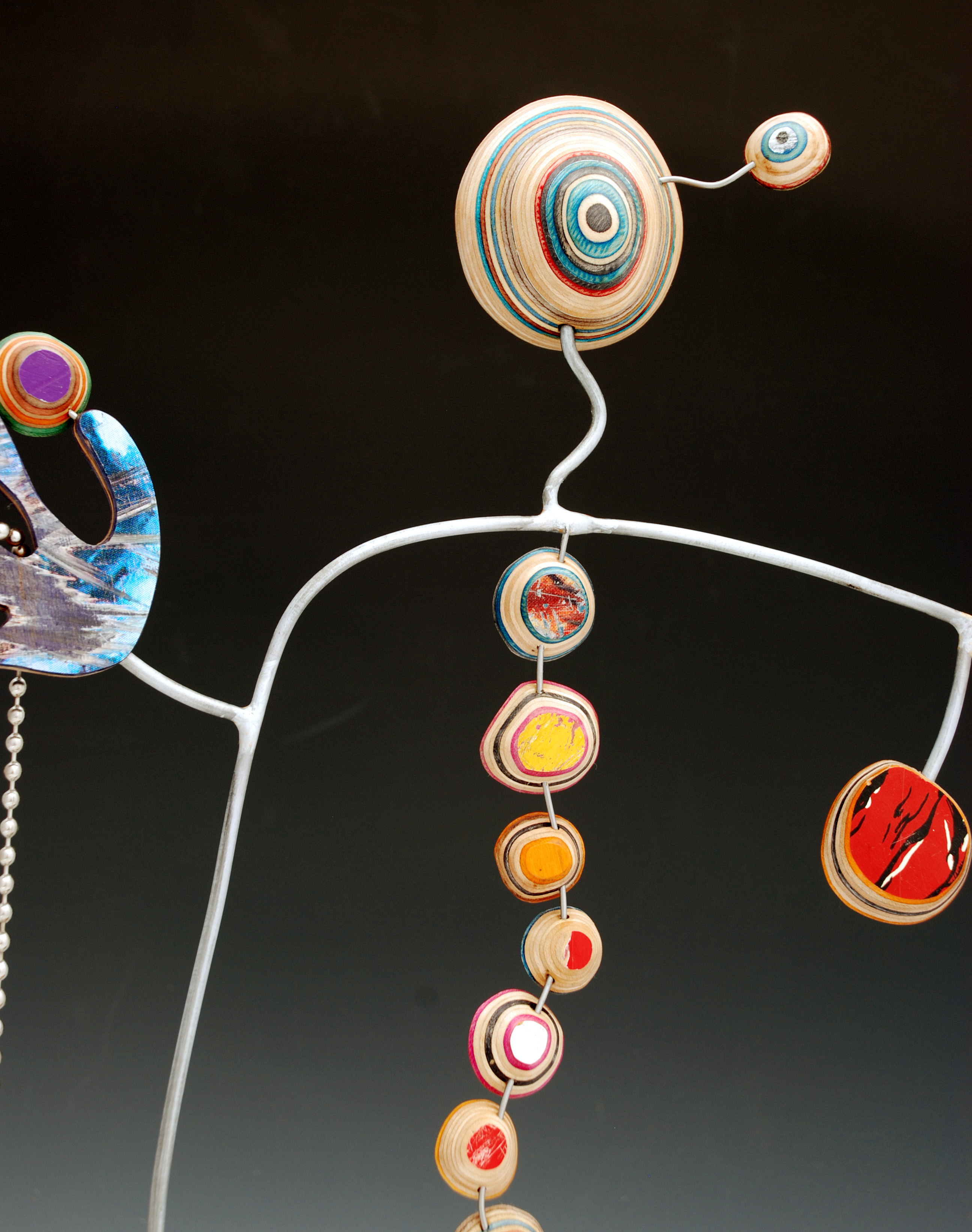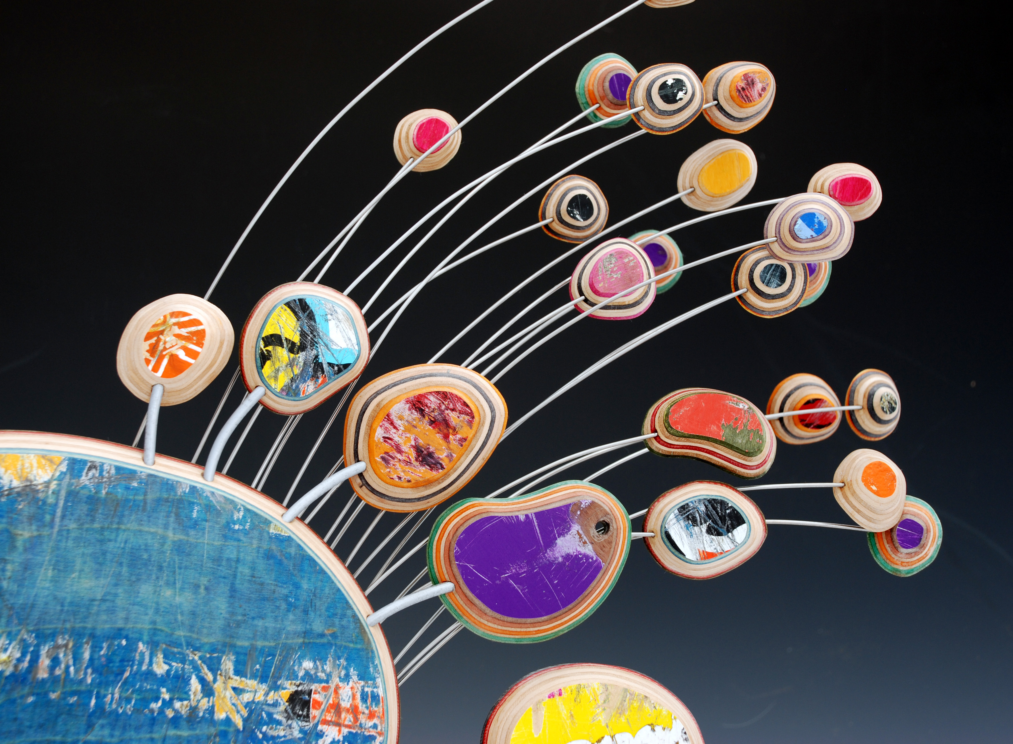 I have loved the simplicity of working with only one material (well there are some dowels and wire), just delving as to possibilities, learning to work with the curving nature of the decks always focused on the distressed graphics.